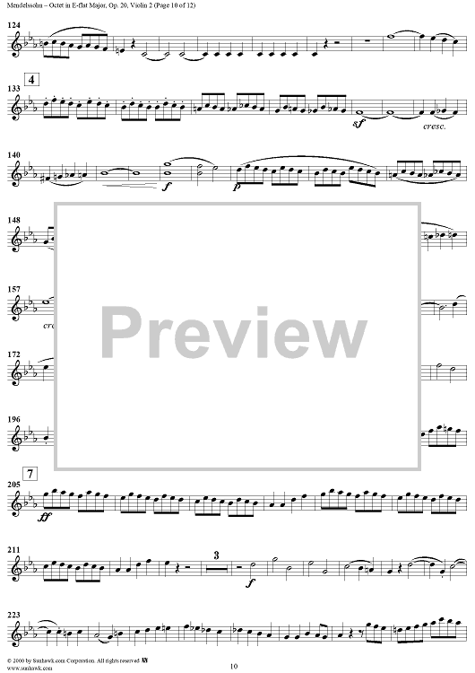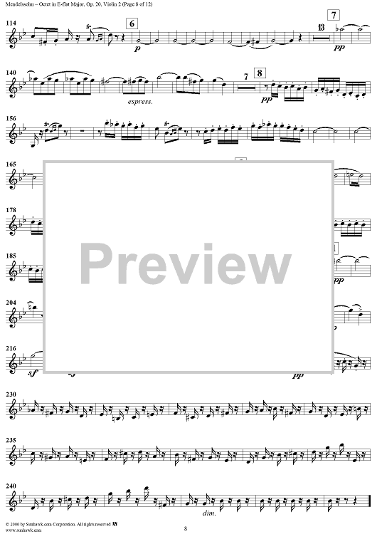 Digital Sheet Music for String Octet in E-flat Major, Op. 20 - Violin 2 by Felix Mendelssohn scored for String Octet; id:235520