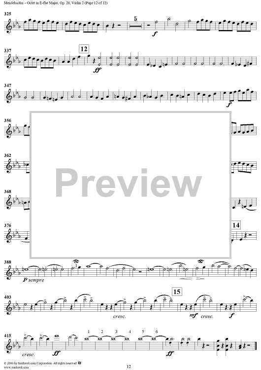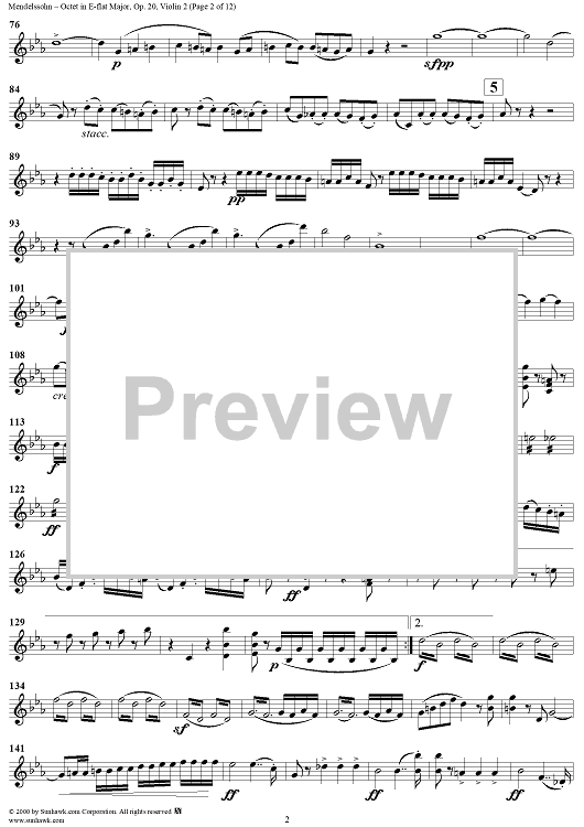 "String Octet in E-flat Major, Op. 20 - Violin 2" Sheet Music by Felix Mendelssohn