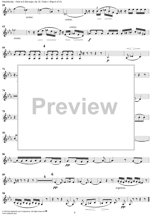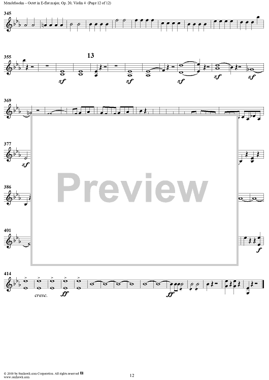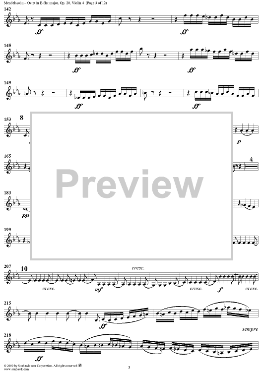 Digital Sheet Music for String Octet in E-flat Major, Op. 20 - Violin 4 by Felix Mendelssohn scored for String Octet; id:241960