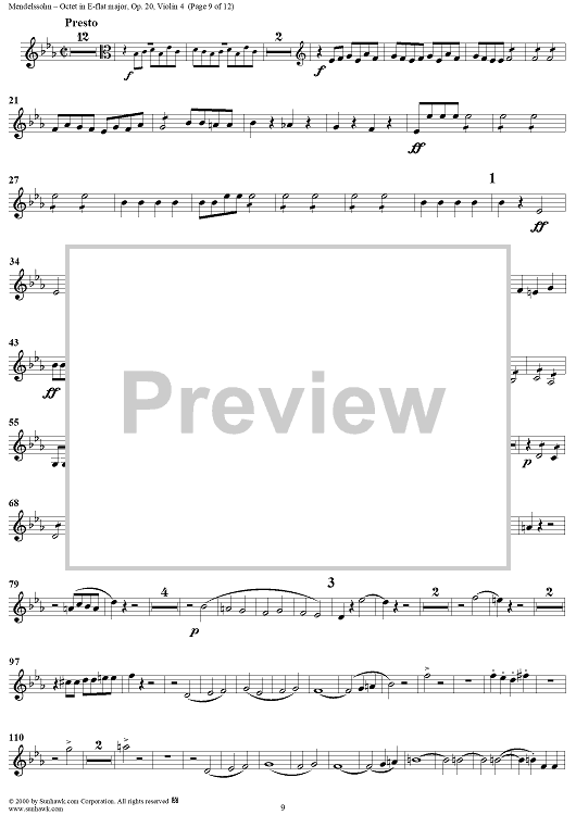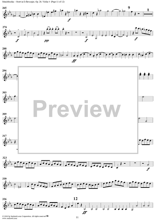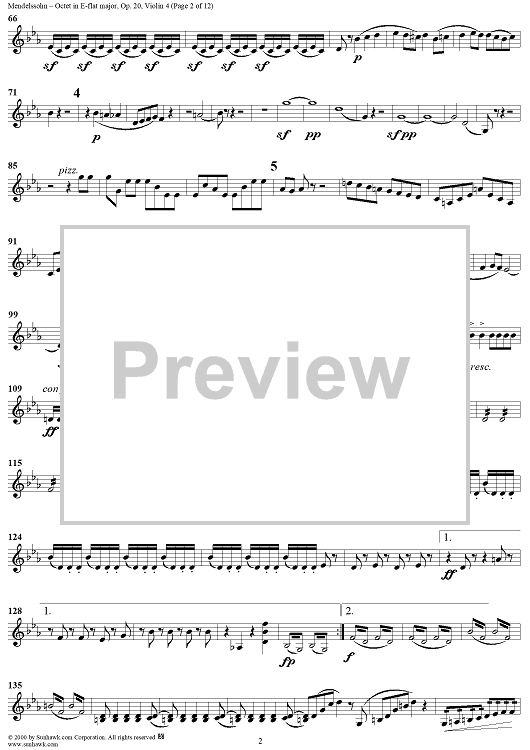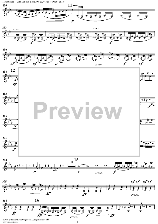 "String Octet in E-flat Major, Op. 20 - Violin 4" Sheet Music by Felix Mendelssohn