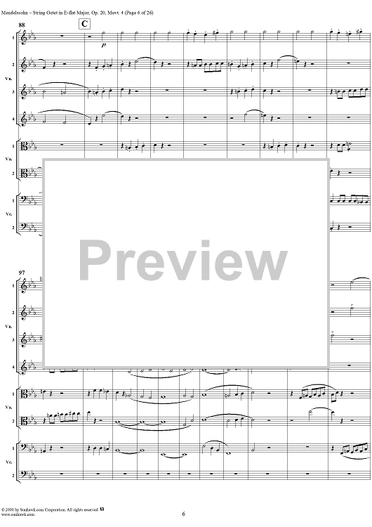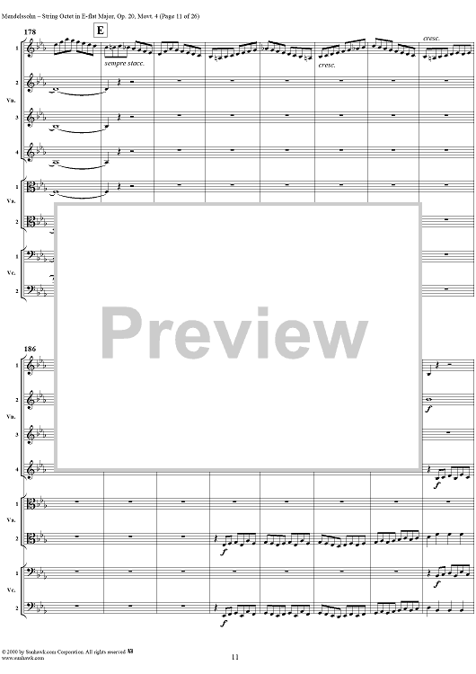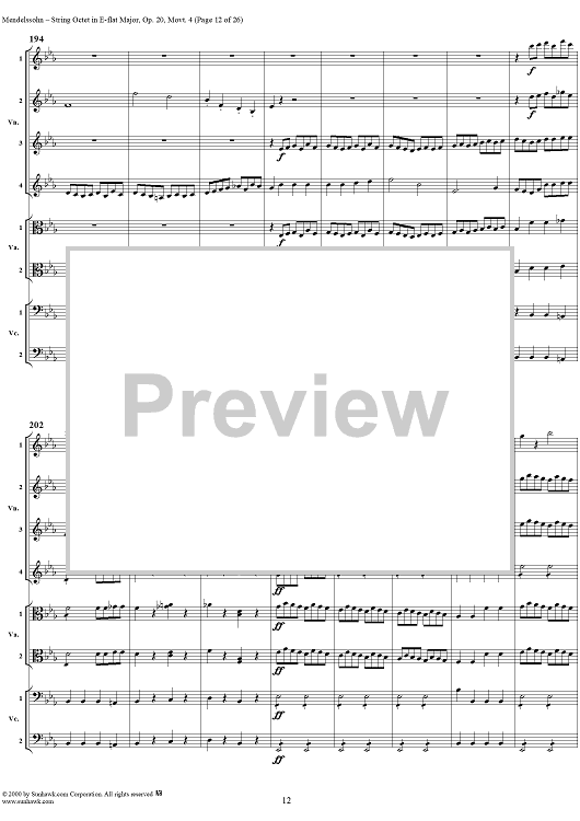 Digital Sheet Music for String Octet, Op. 20, Movement 4 - Score by Felix Mendelssohn scored for String Octet; id:235528