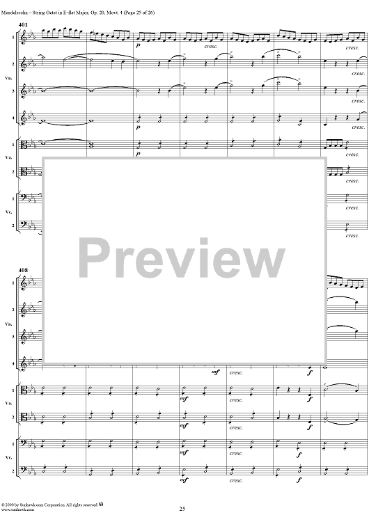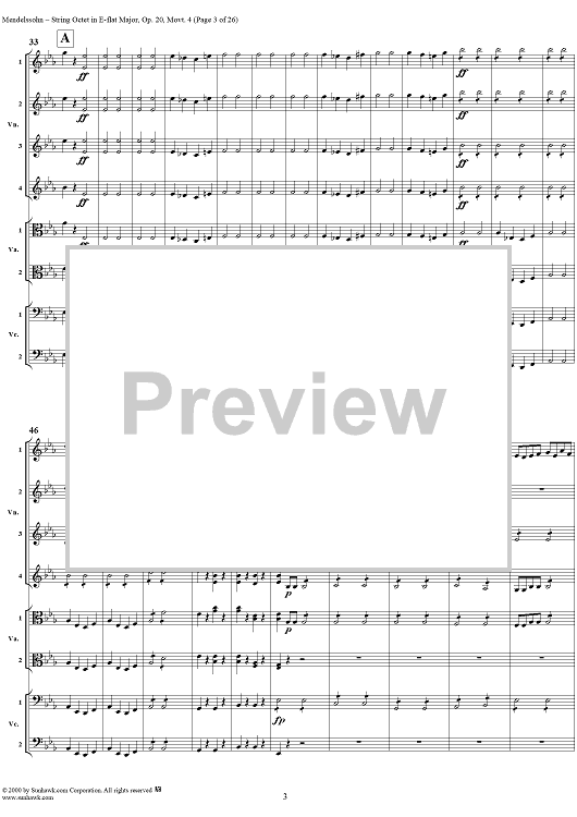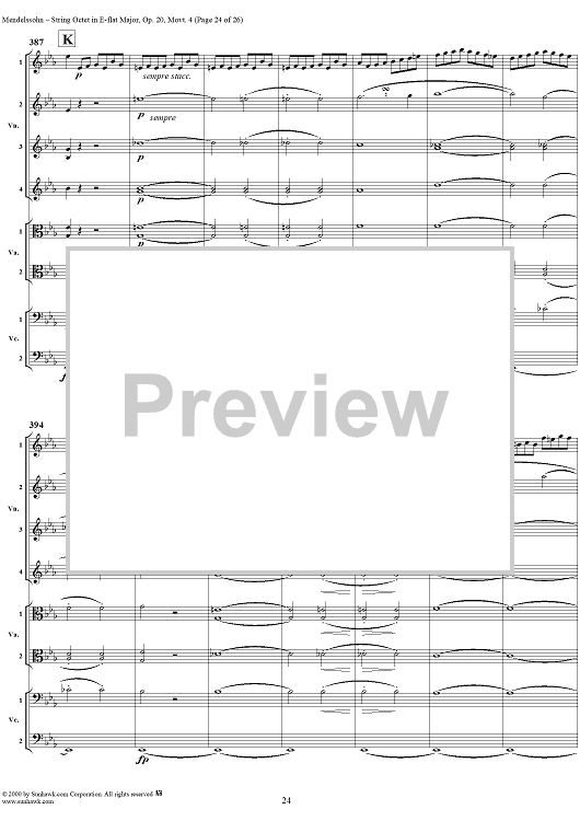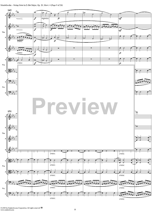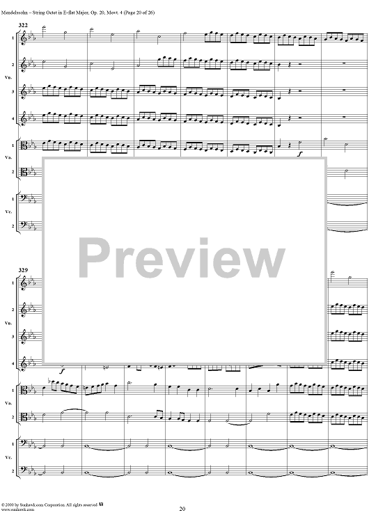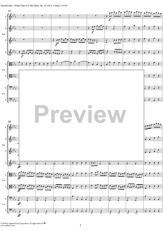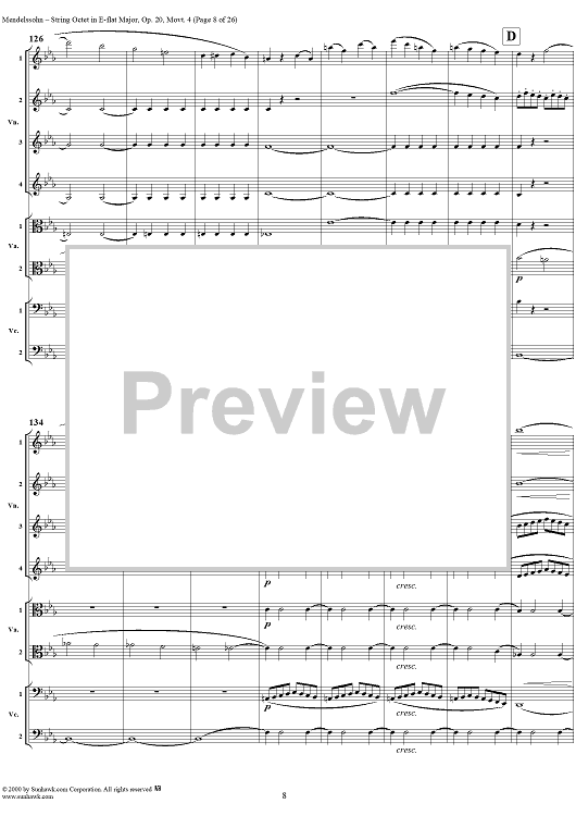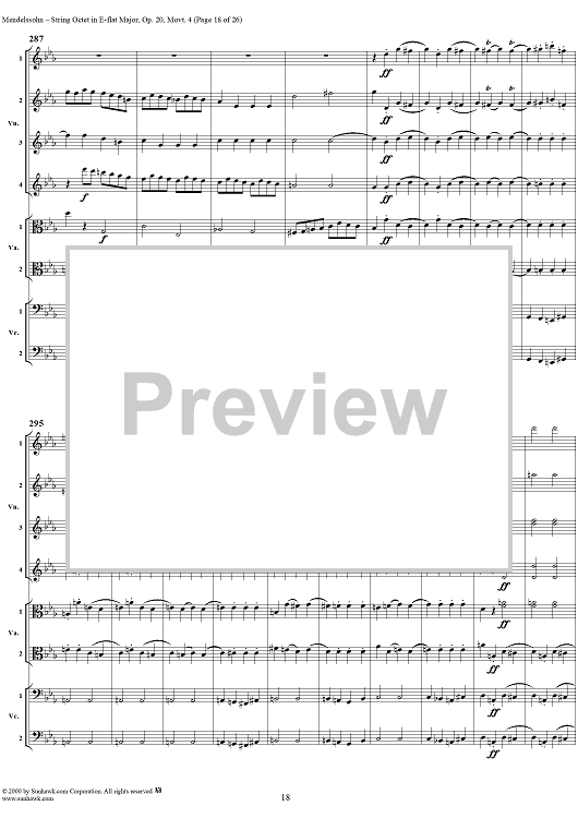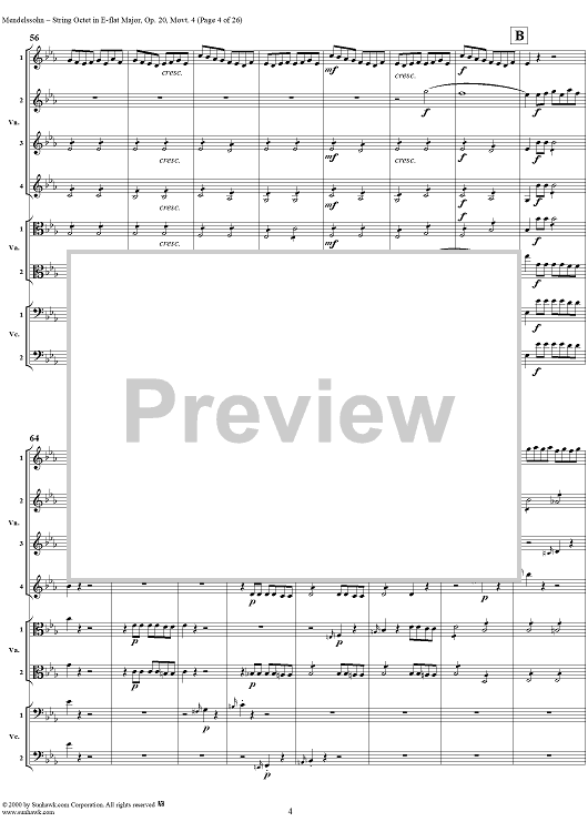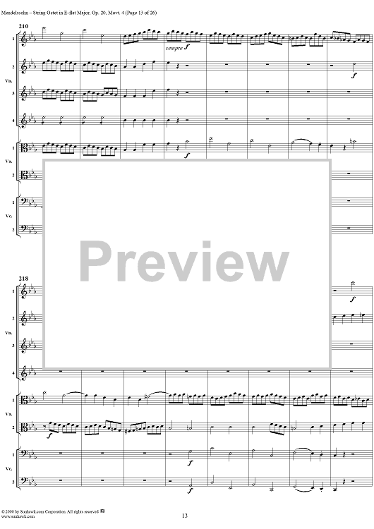 "String Octet, Op. 20, Movement 4 - Score" Sheet Music by Felix Mendelssohn