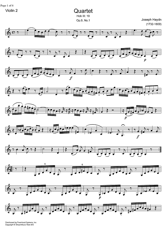 "String Quartet C Major Op. 9 No. 1 - Violin 2" Sheet Music by Franz Joseph Haydn