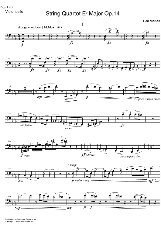 "String Quartet Eb Major Op.14 - Cello" Sheet Music by Carl Nielsen