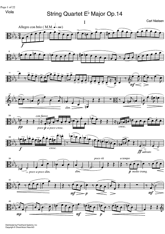 Digital Sheet Music for String Quartet Eb Major Op.14 - Viola by Carl Nielsen scored for String Quartet; id:332870
