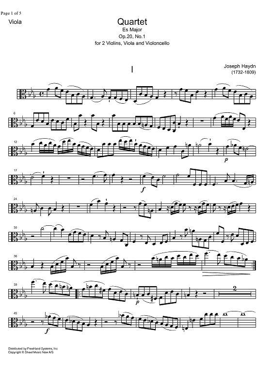 "String Quartet Eb Major Op.20 No. 1 - Viola" Sheet Music by Franz Joseph Haydn
