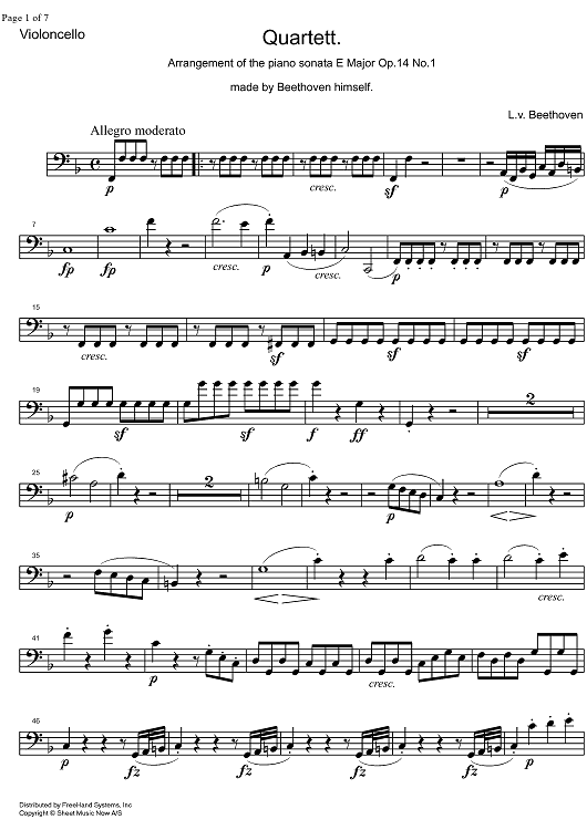 "String Quartet F Major Op.14 No. 1 - Cello" Sheet Music by Ludwig van Beethoven