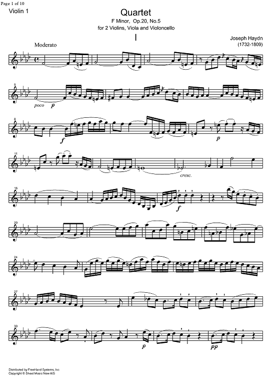 "String Quartet f minor Op.20 No. 5 - Violin 1" Sheet Music by Franz Joseph Haydn