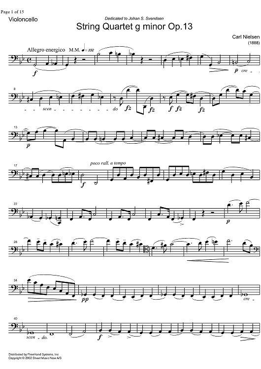 "String Quartet g minor Op.13 - Cello" Sheet Music by Carl Nielsen