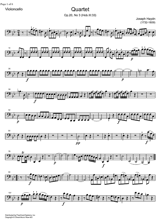 "String Quartet g minor Op.20 No. 3 - Cello" Sheet Music by Franz Joseph Haydn