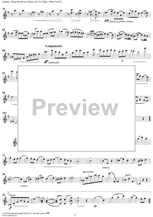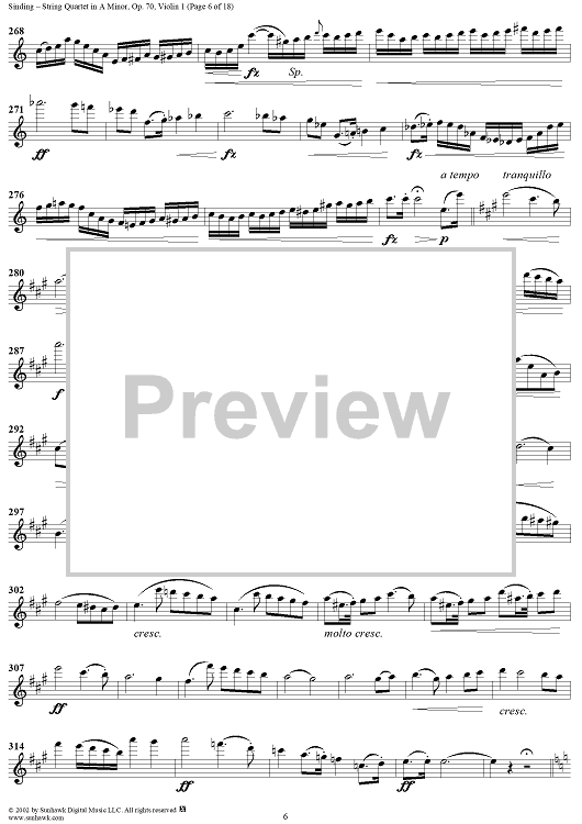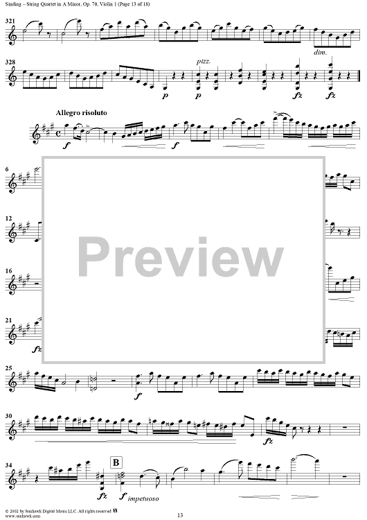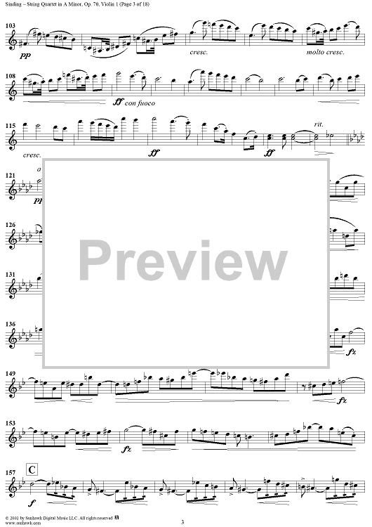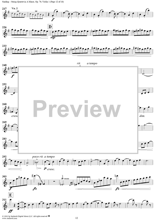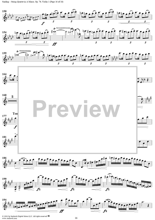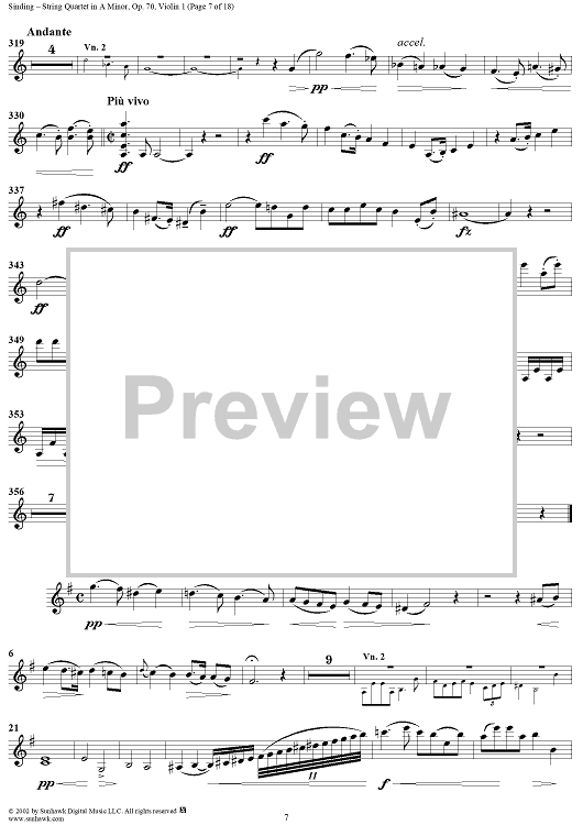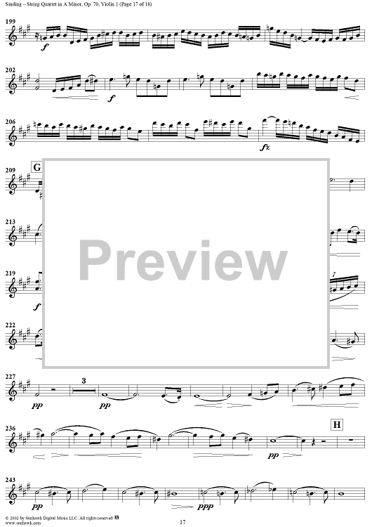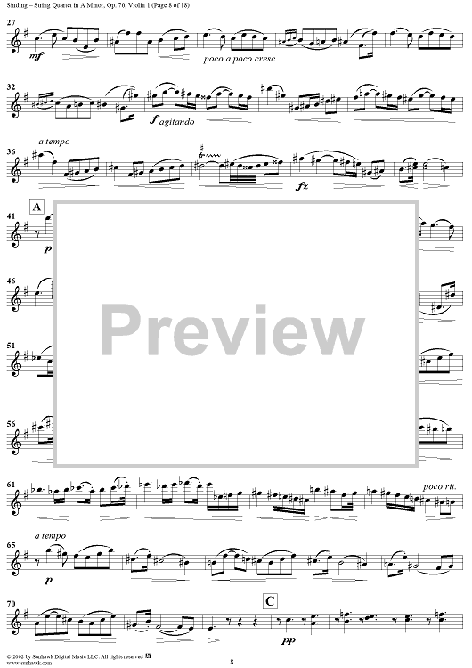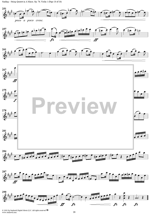 Digital Sheet Music for String Quartet in A Minor, Op. 70 - Violin 1 by Christian Sinding scored for String Quartet; id:271621
