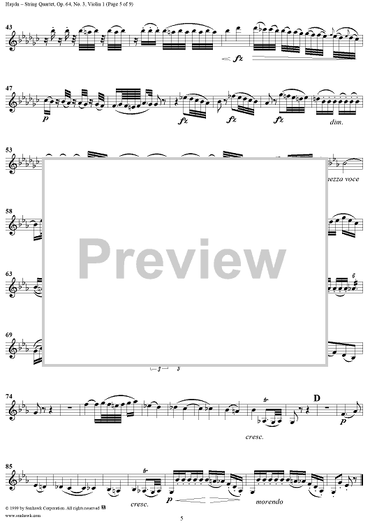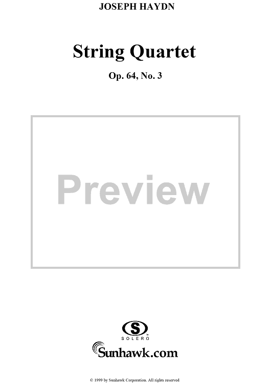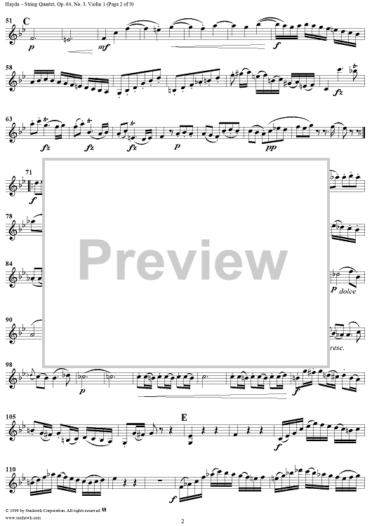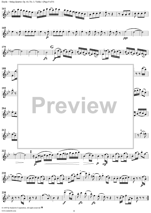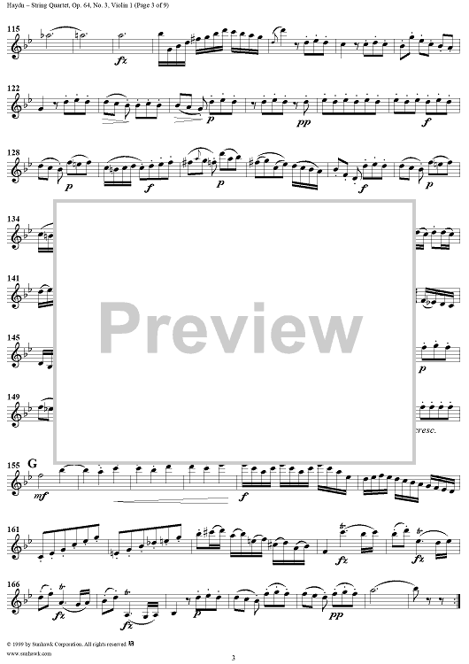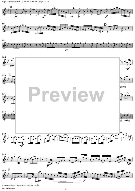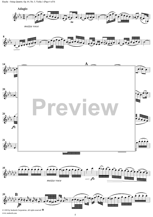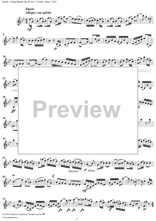 Digital Sheet Music for String Quartet in B-flat Major, Op. 64, No. 3 - Violin 1 by Franz Joseph Haydn scored for String Quartet; id:118570