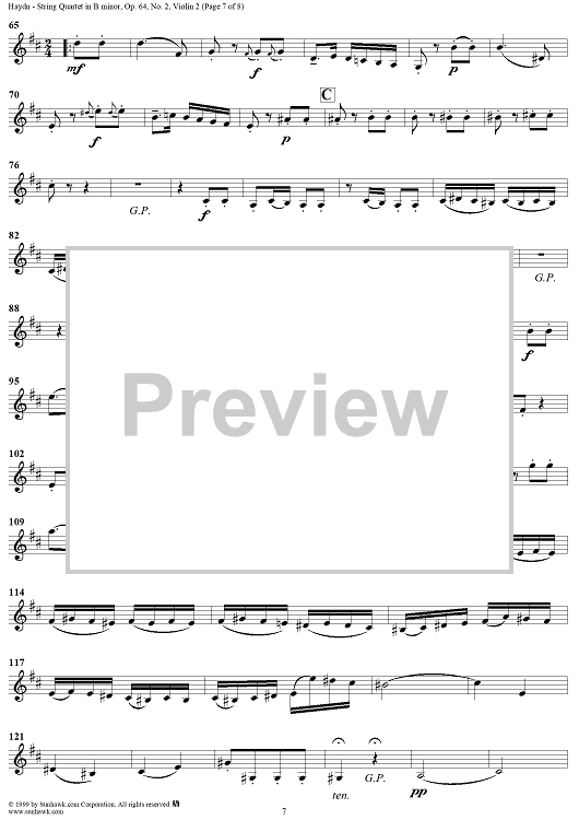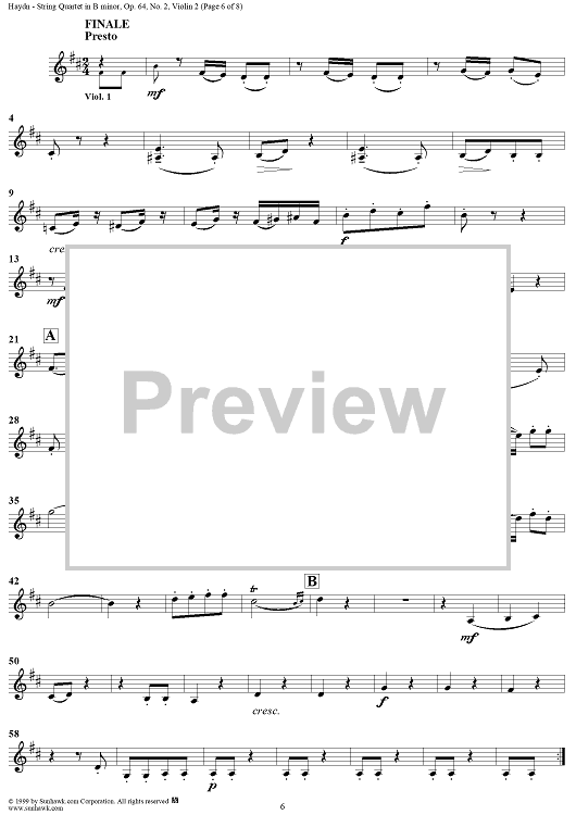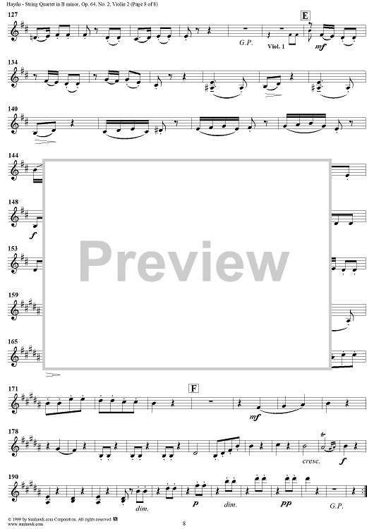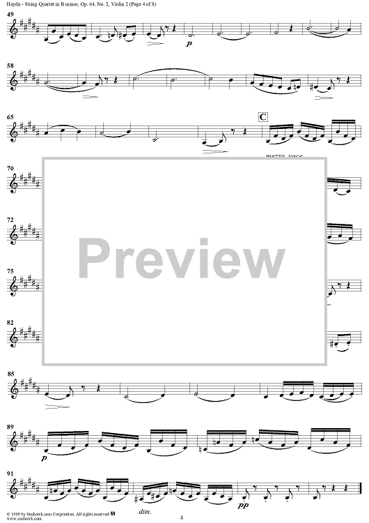 Digital Sheet Music for String Quartet in B Minor, Op. 64, No. 2 - Violin 2 by Franz Joseph Haydn scored for String Quartet; id:119437