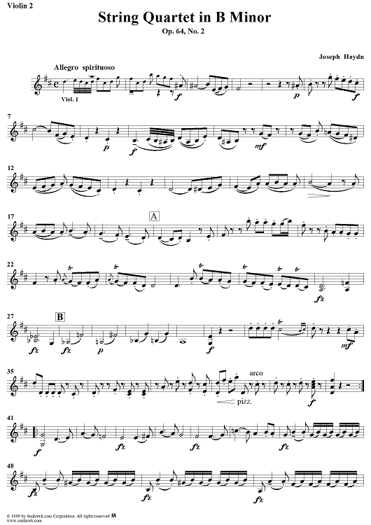"String Quartet in B Minor, Op. 64, No. 2 - Violin 2" Sheet Music by Franz Joseph Haydn