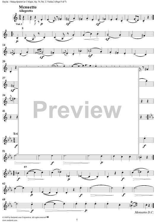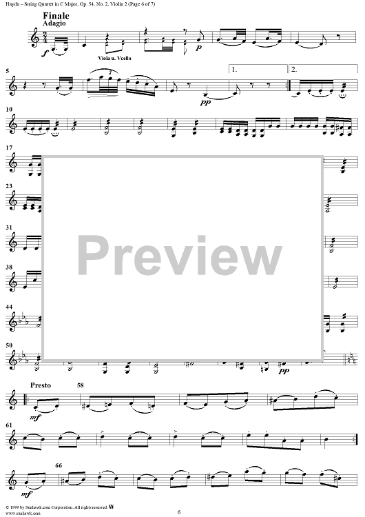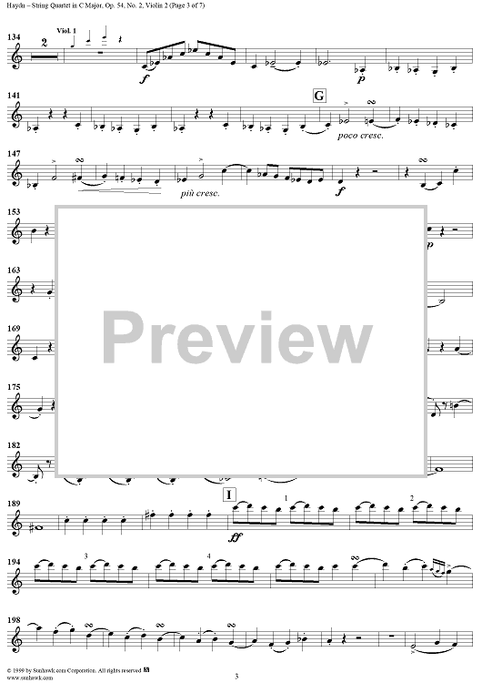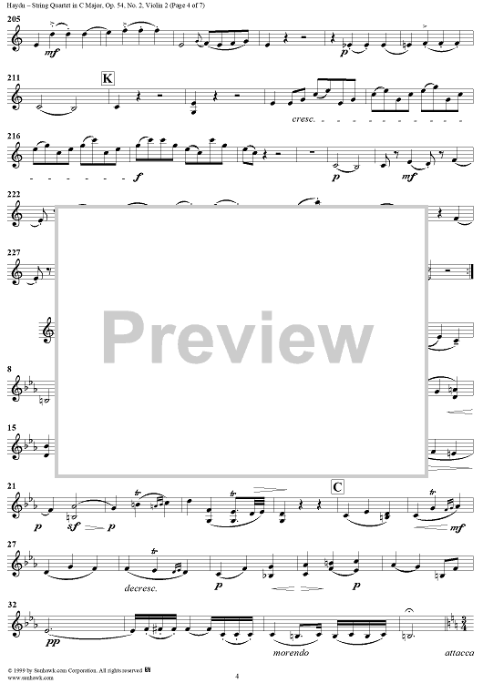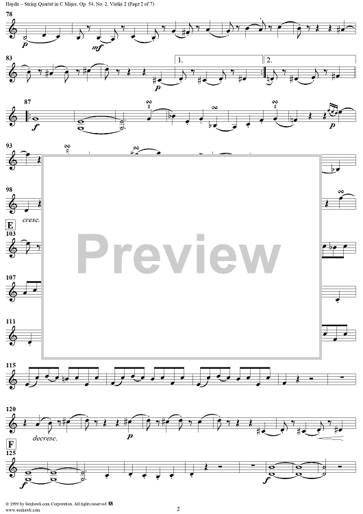 Digital Sheet Music for String Quartet in C Major, Op. 54, No. 2 - Violin 2 by Franz Joseph Haydn scored for String Quartet; id:176610