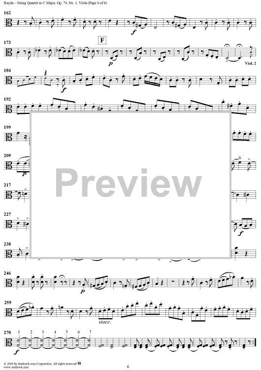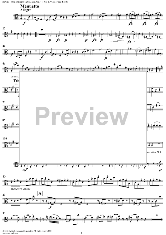 Digital Sheet Music for String Quartet in C Major, Op. 74, No. 1 - Viola by Franz Joseph Haydn scored for String Quartet; id:241981