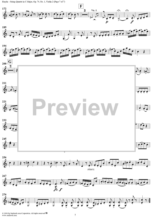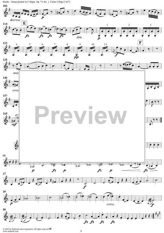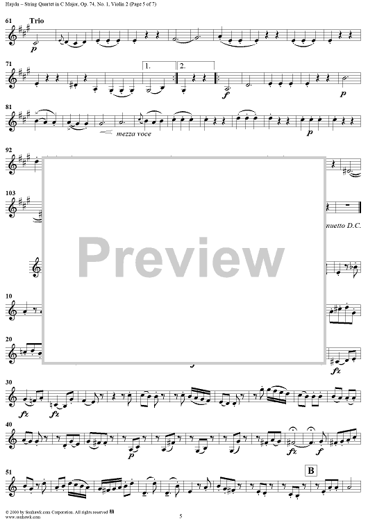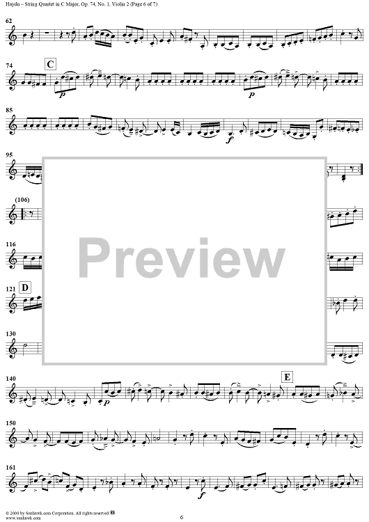 Digital Sheet Music for String Quartet in C Major, Op. 74, No. 1 - Violin 2 by Franz Joseph Haydn scored for String Quartet; id:241980