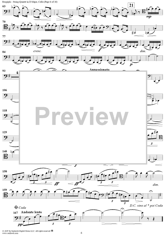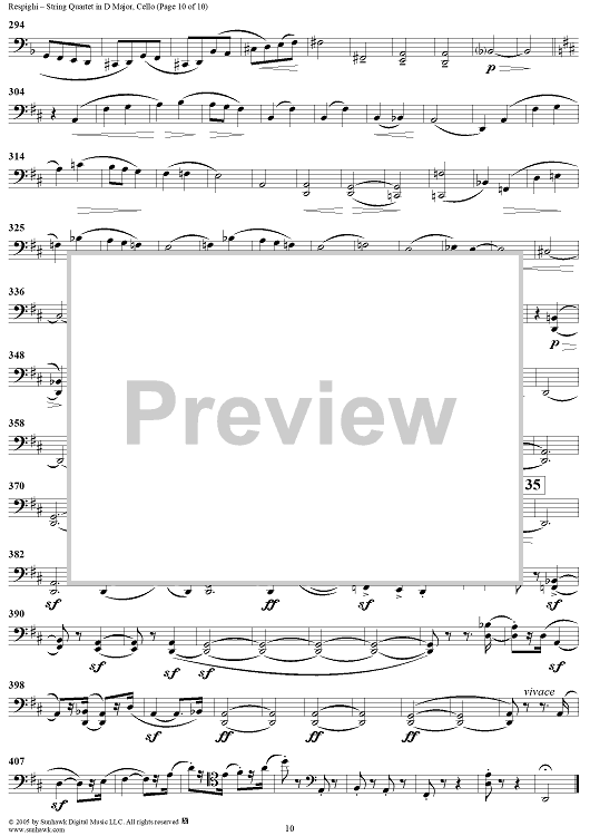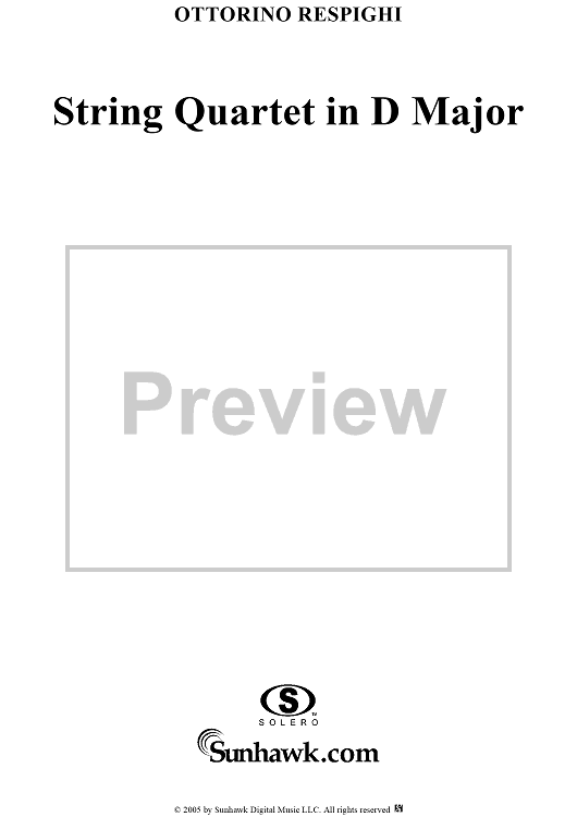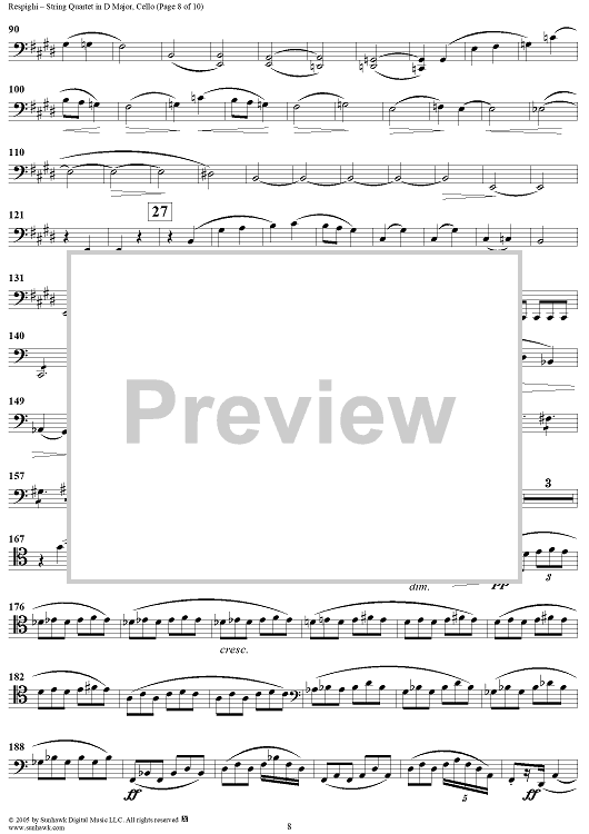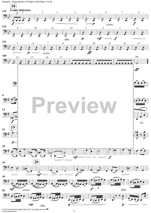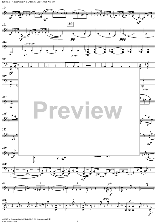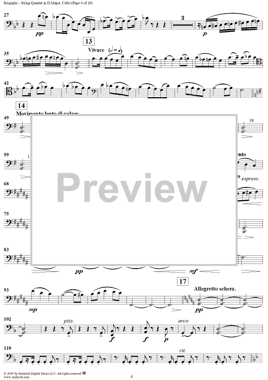 Digital Sheet Music for String Quartet in D Major - Cello by Ottorino Respighi scored for String Quartet; id:303732