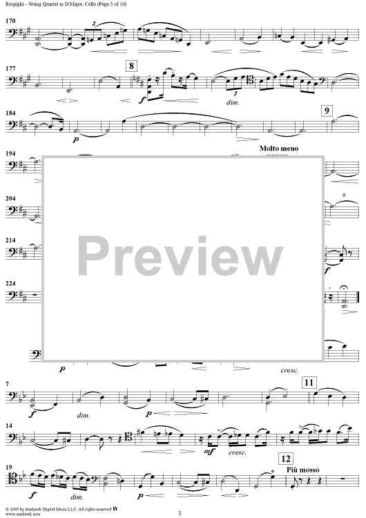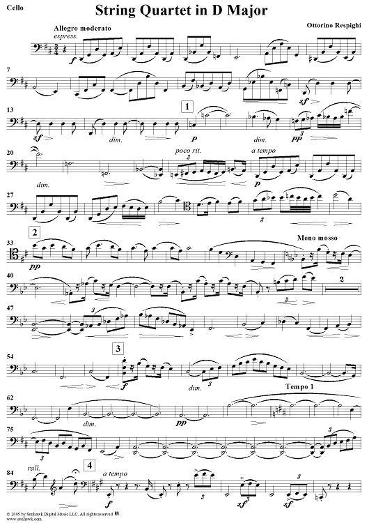 "String Quartet in D Major - Cello" Sheet Music by Ottorino Respighi