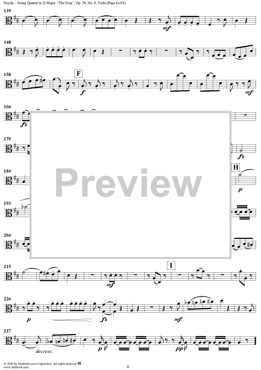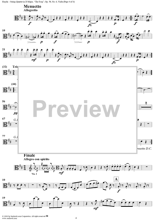 Digital Sheet Music for String Quartet in D Major, Op. 50, No. 6 - Viola by Franz Joseph Haydn scored for String Quartet; id:241744