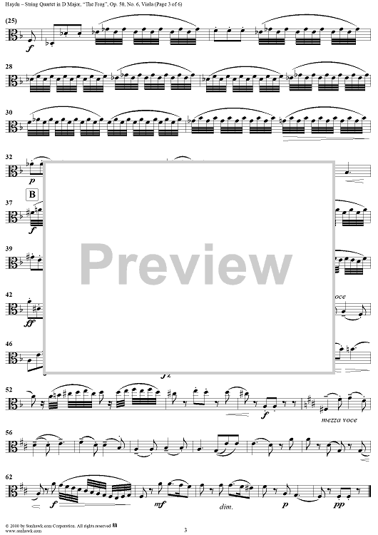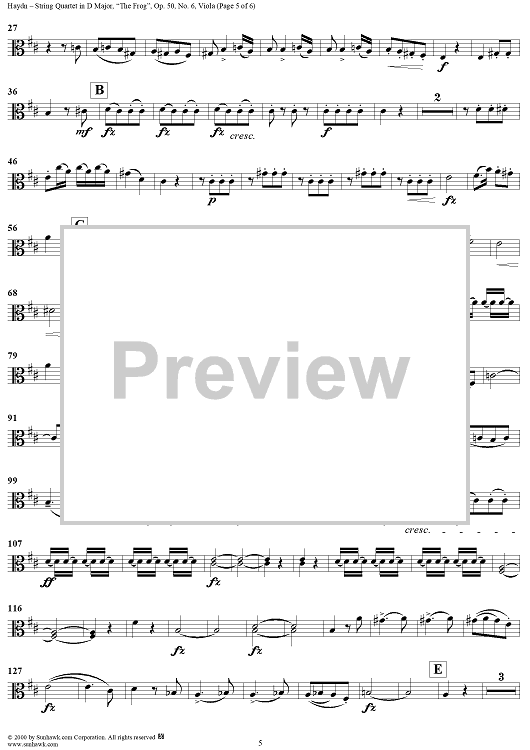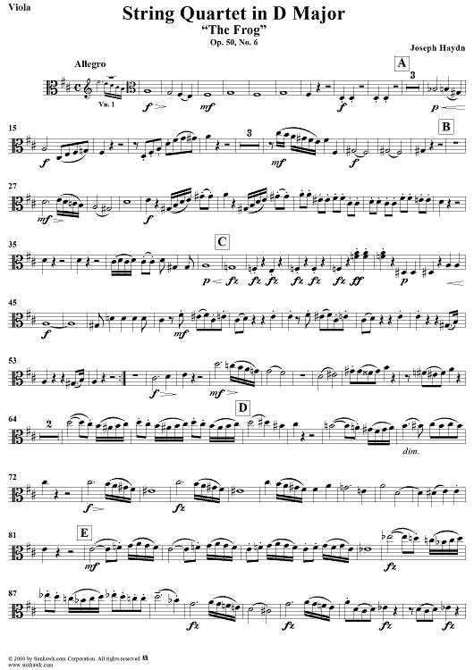 "String Quartet in D Major, Op. 50, No. 6 - Viola" Sheet Music by Franz Joseph Haydn