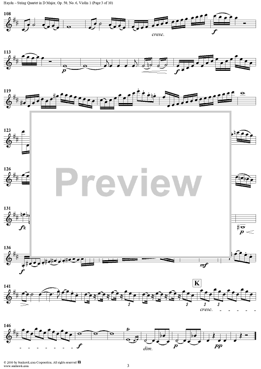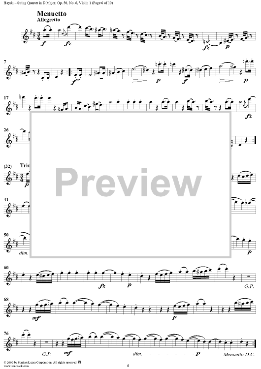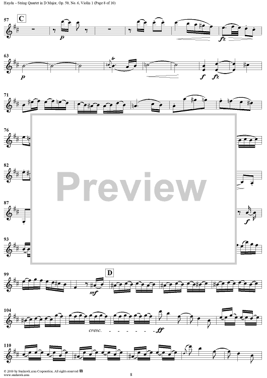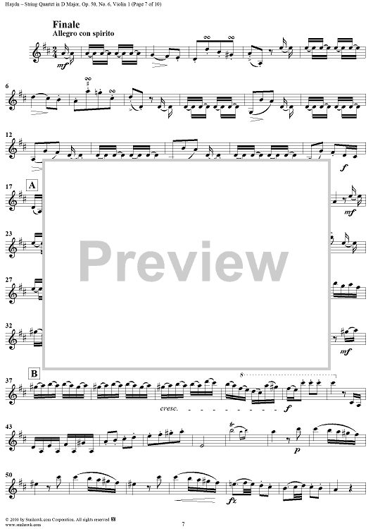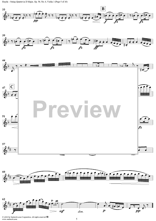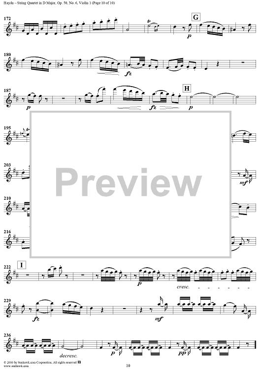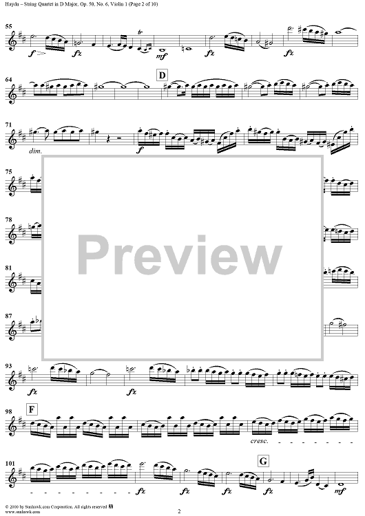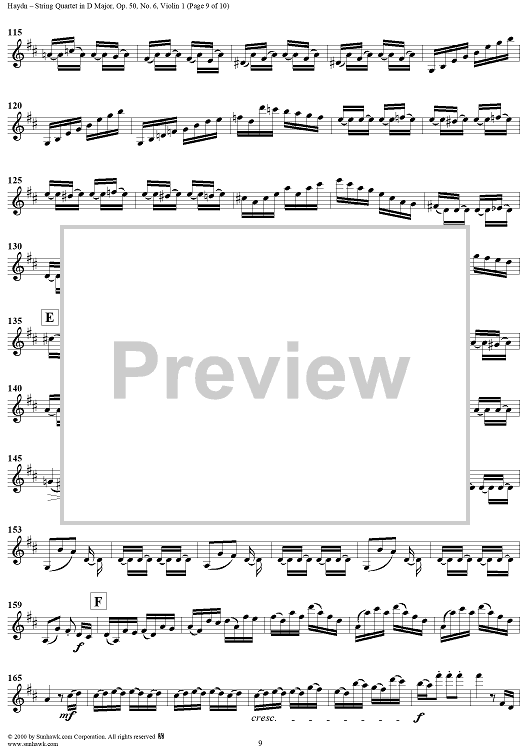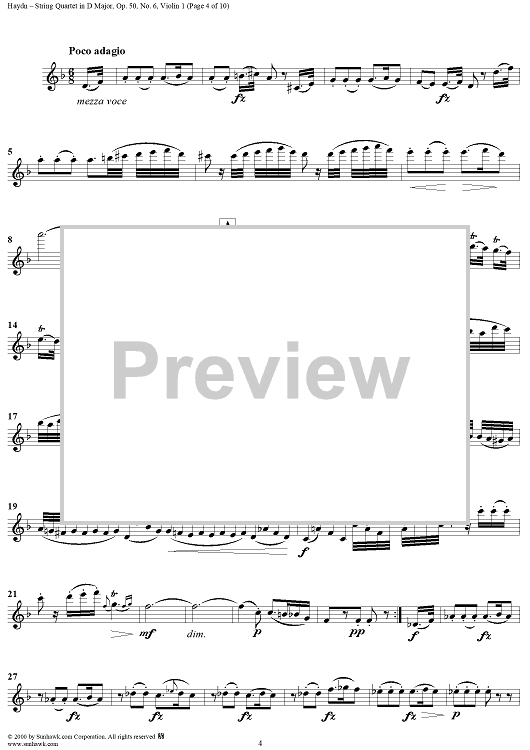 Digital Sheet Music for String Quartet in D Major, Op. 50, No. 6 - Violin 1 by Franz Joseph Haydn scored for String Quartet; id:241742