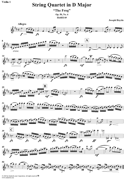 "String Quartet in D Major, Op. 50, No. 6 - Violin 1" Sheet Music by Franz Joseph Haydn