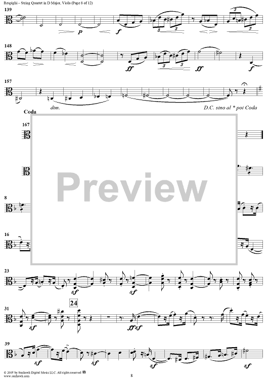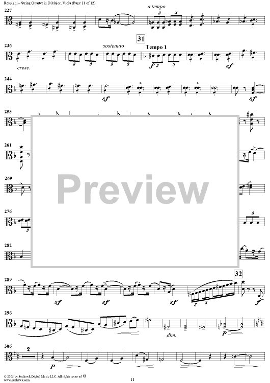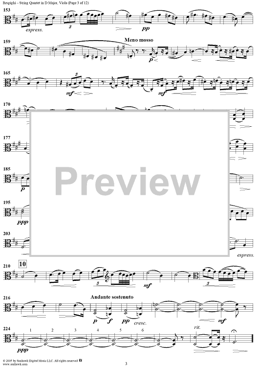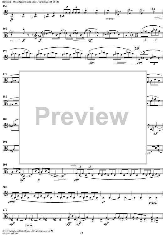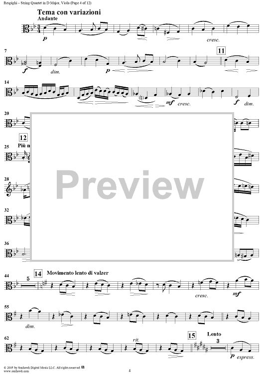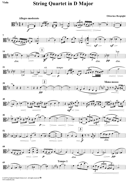"String Quartet in D Major - Viola" Sheet Music by Ottorino Respighi