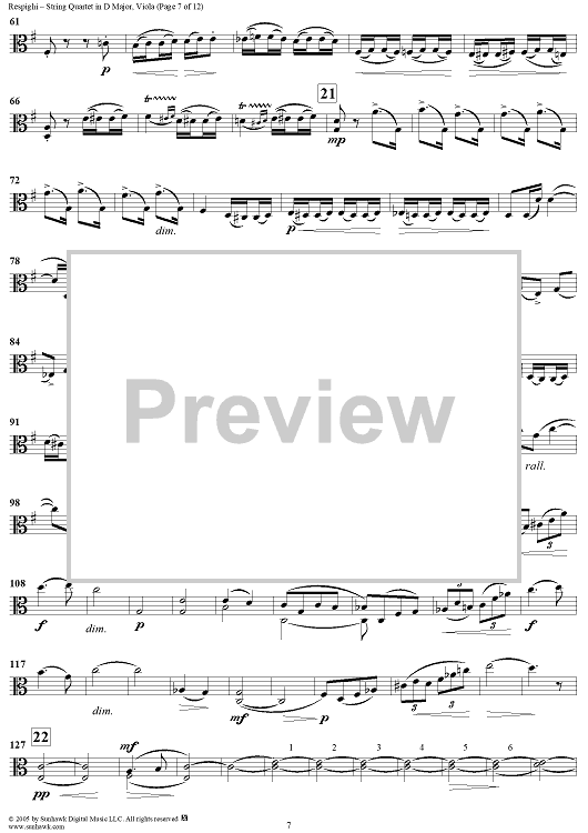 Digital Sheet Music for String Quartet in D Major - Viola by Ottorino Respighi scored for String Quartet; id:303731