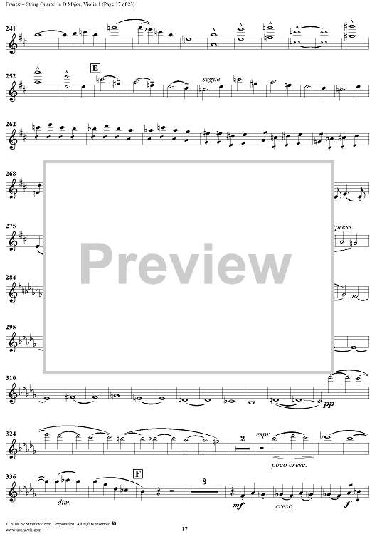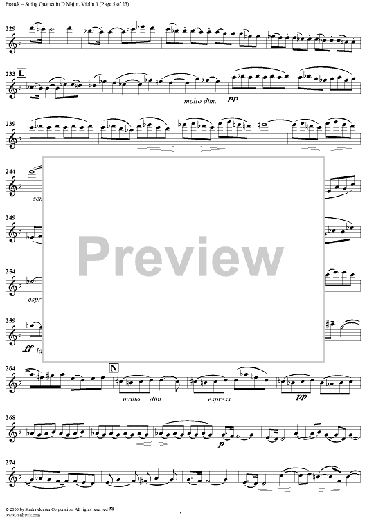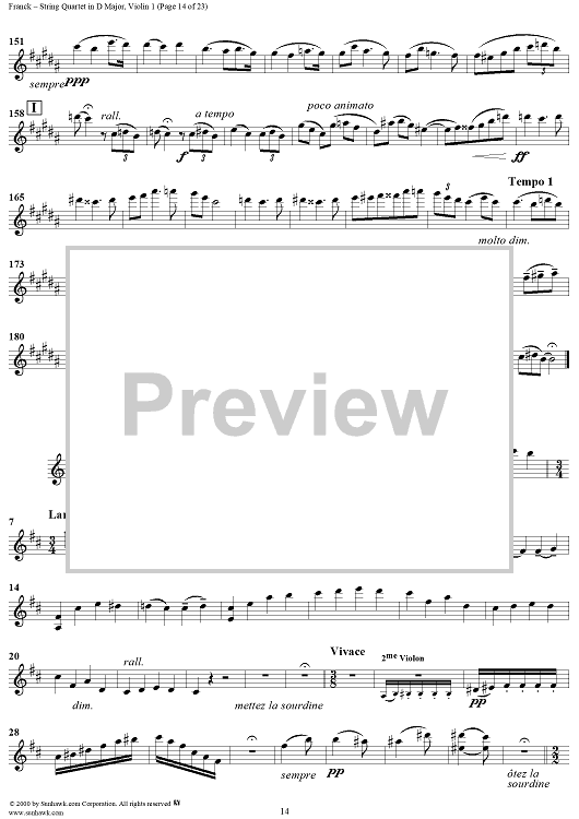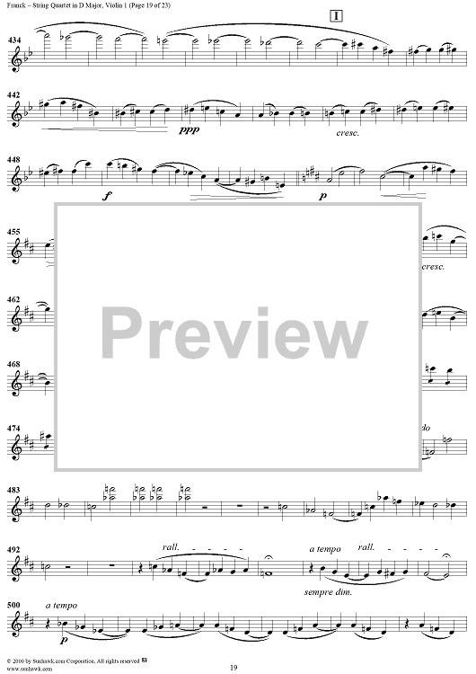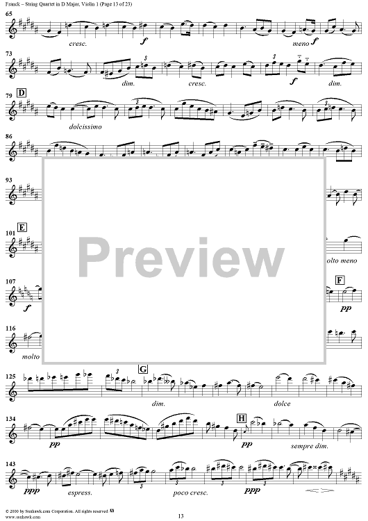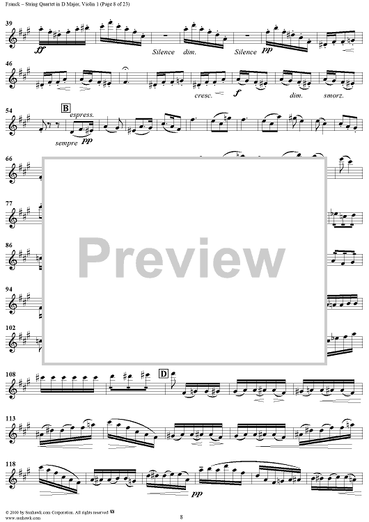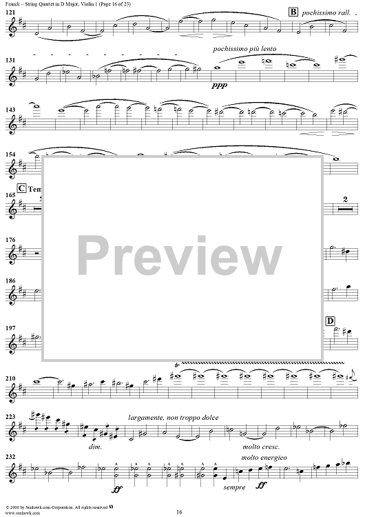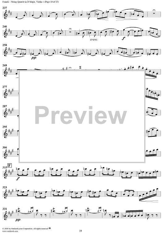 Digital Sheet Music for String Quartet in D Major - Violin 1 by César Franck scored for String Quartet; id:241377