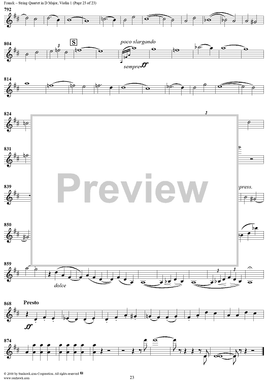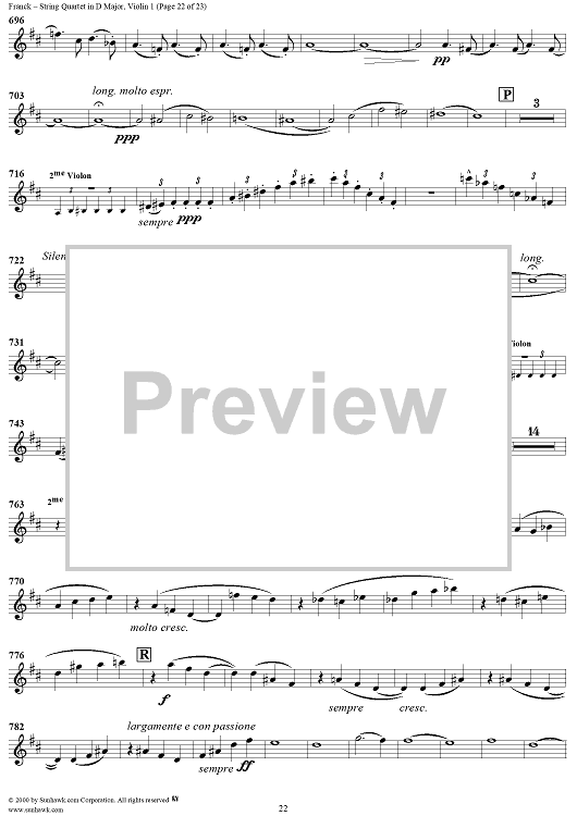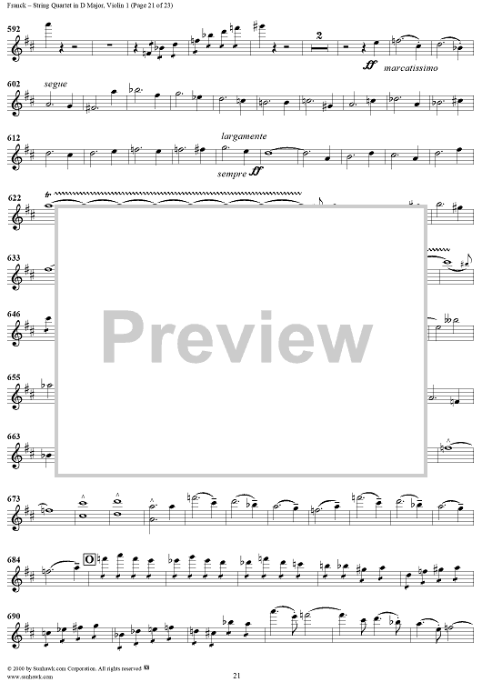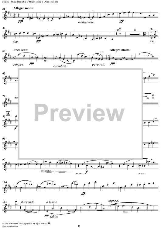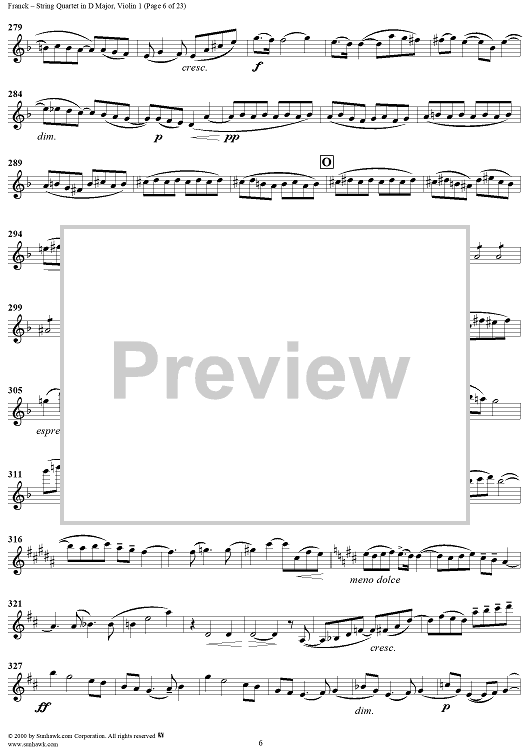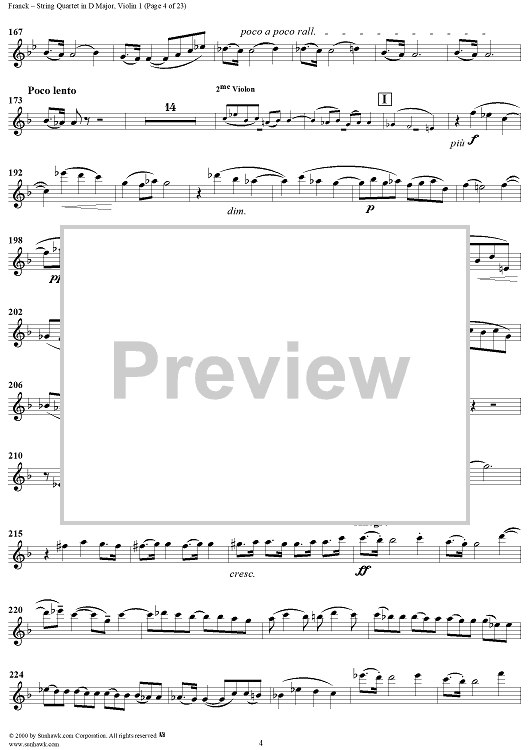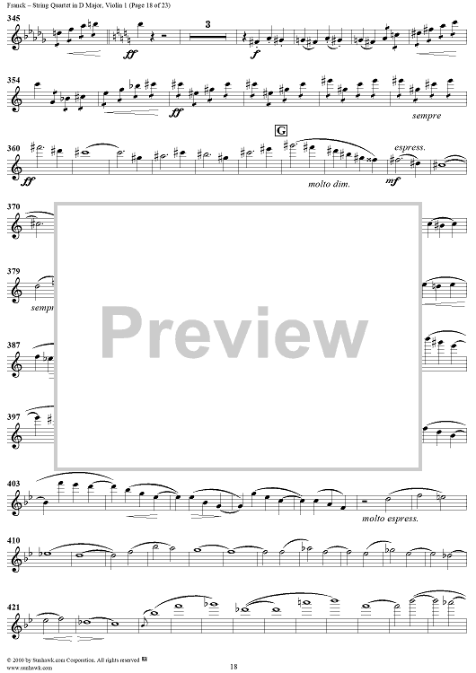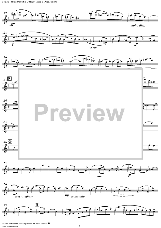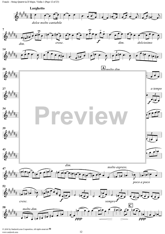 Digital Sheet Music for String Quartet in D Major - Violin 1 by César Franck scored for String Quartet; id:241377