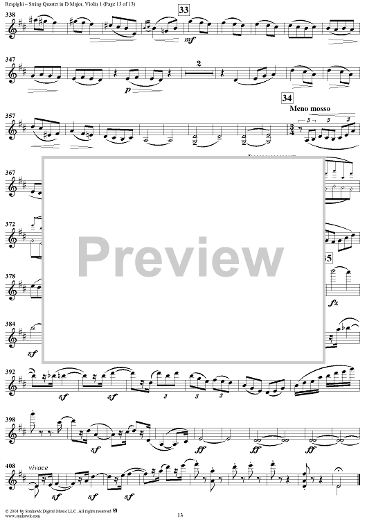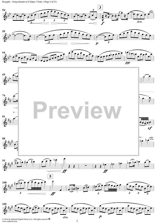 "String Quartet in D Major - Violin 1" Sheet Music by Ottorino Respighi