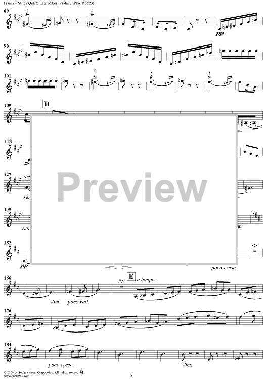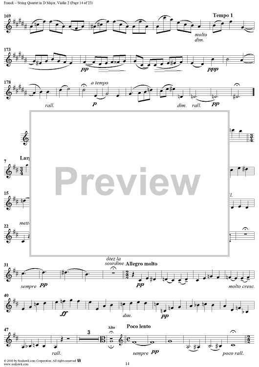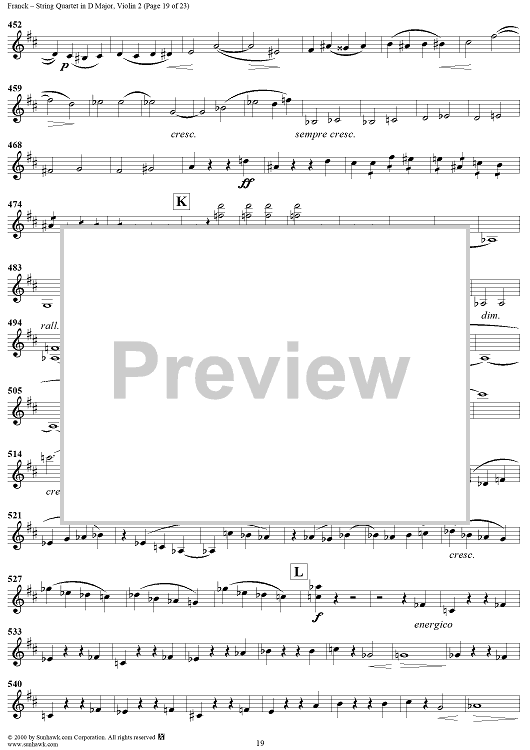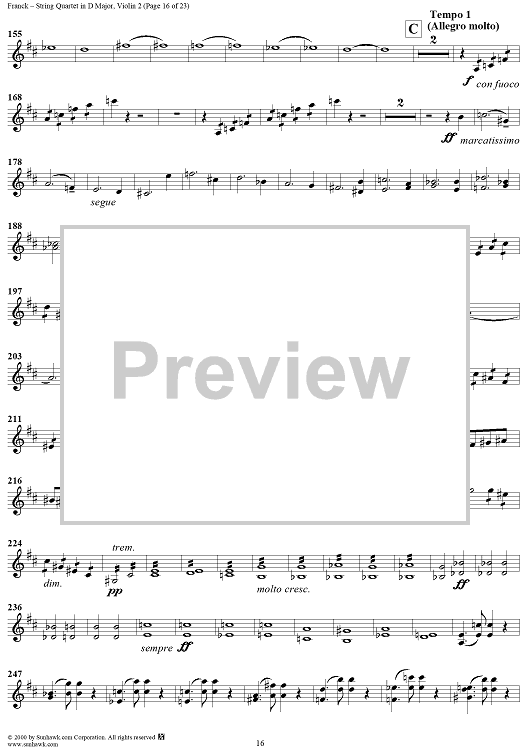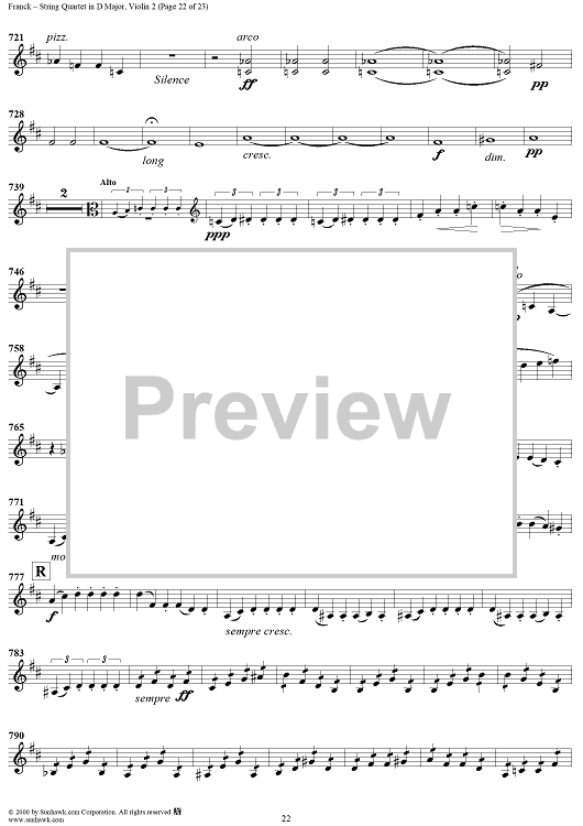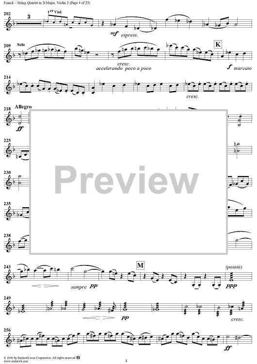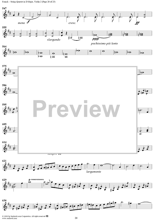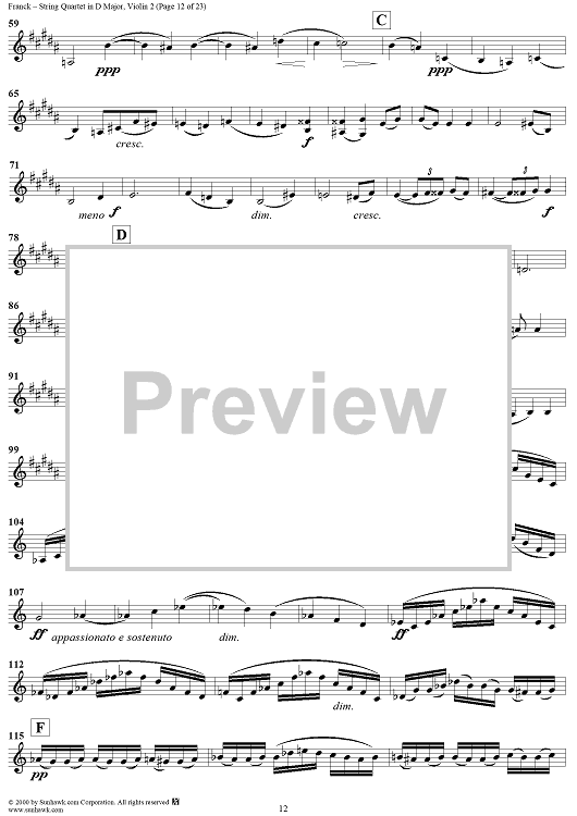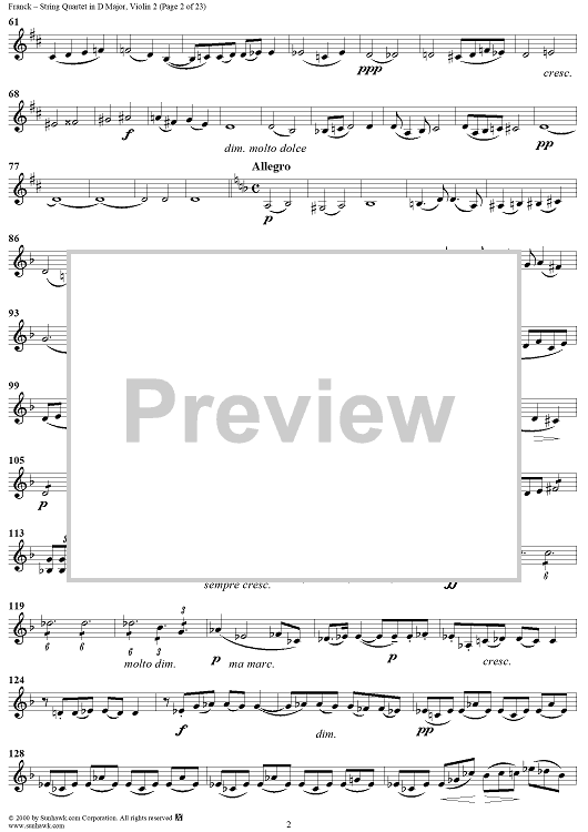 Digital Sheet Music for String Quartet in D Major - Violin 2 by César Franck scored for String Quartet; id:241459