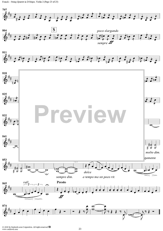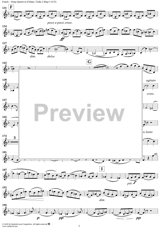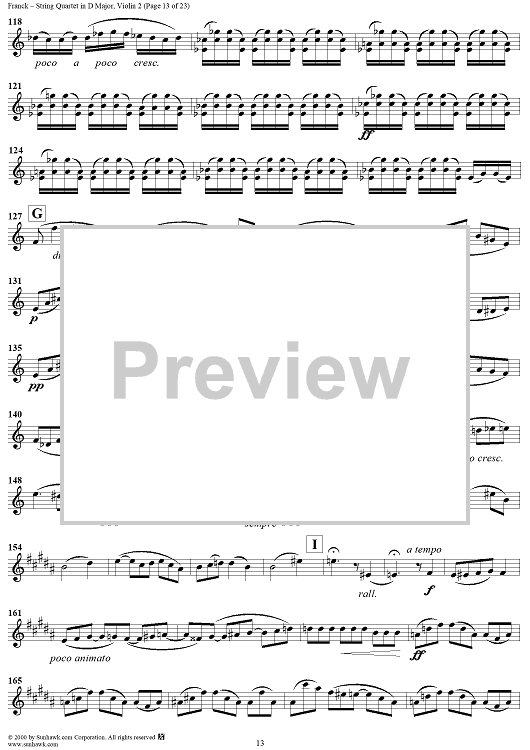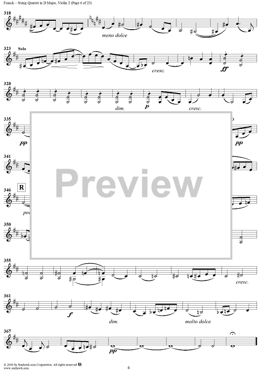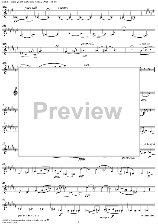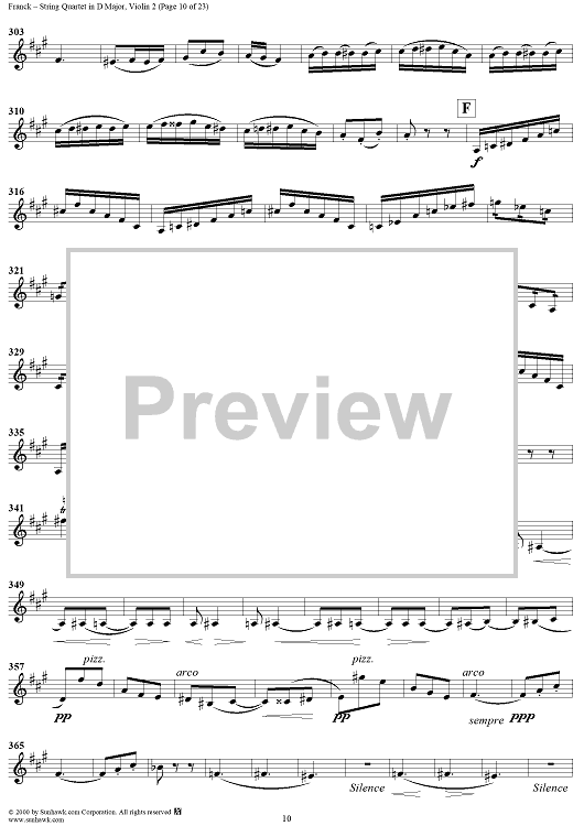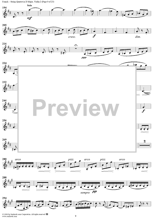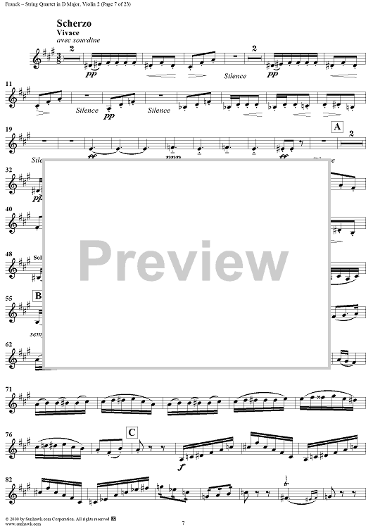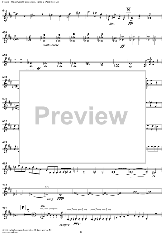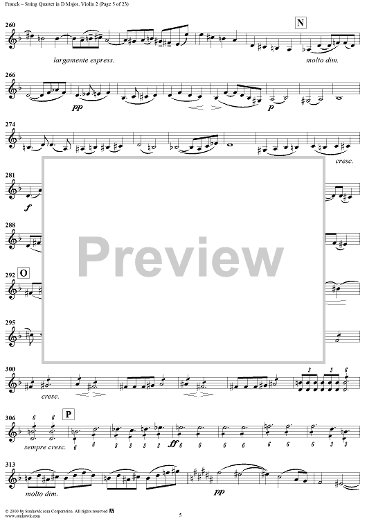Digital Sheet Music for String Quartet in D Major - Violin 2 by César Franck scored for String Quartet; id:241459
