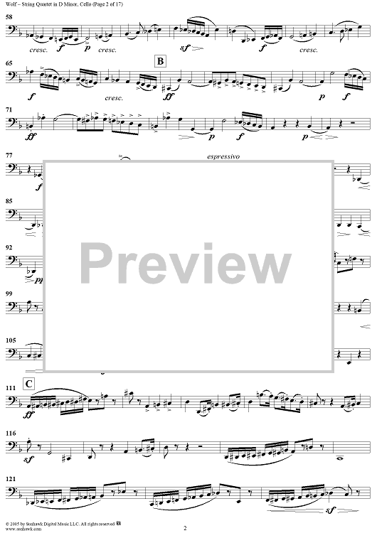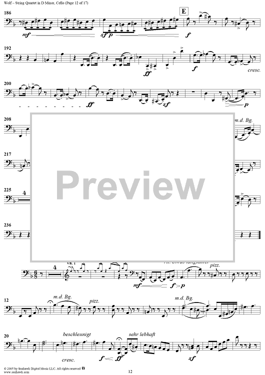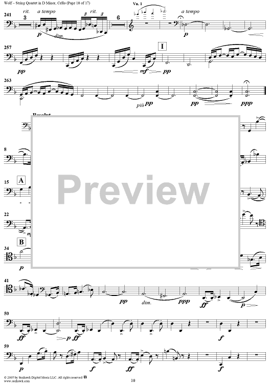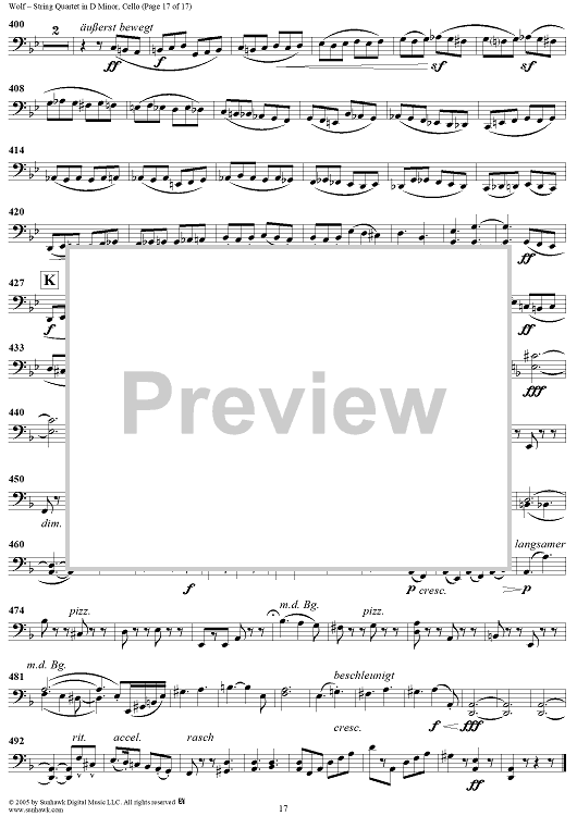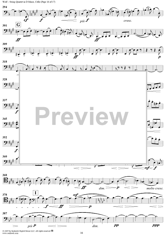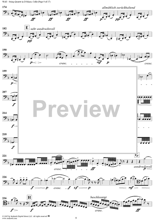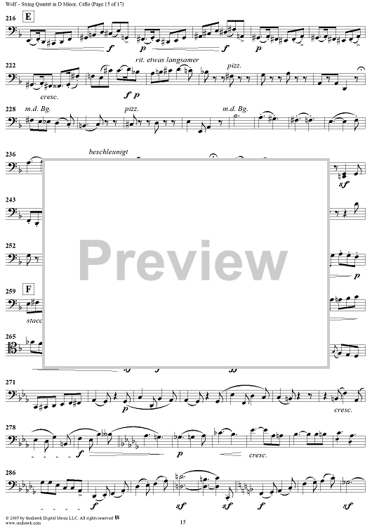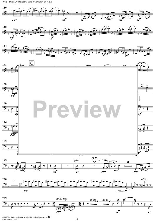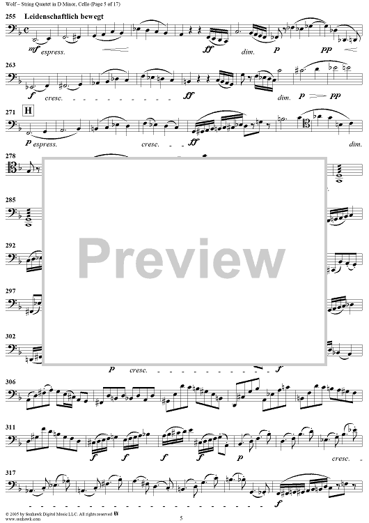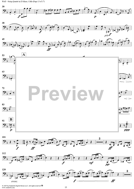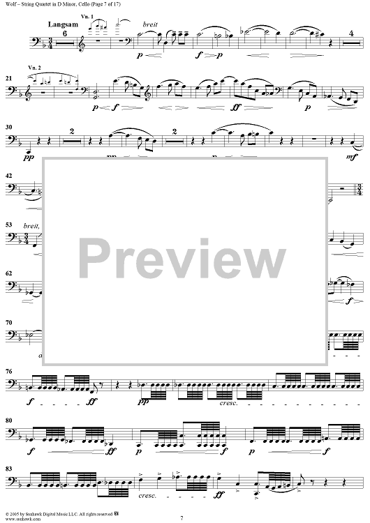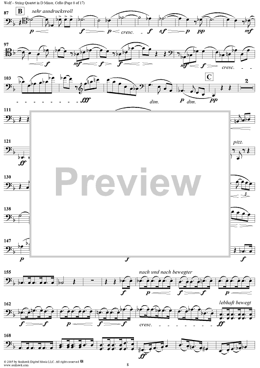 Digital Sheet Music for String Quartet in D Minor - Cello by Hugo Wolf scored for String Quartet; id:309412