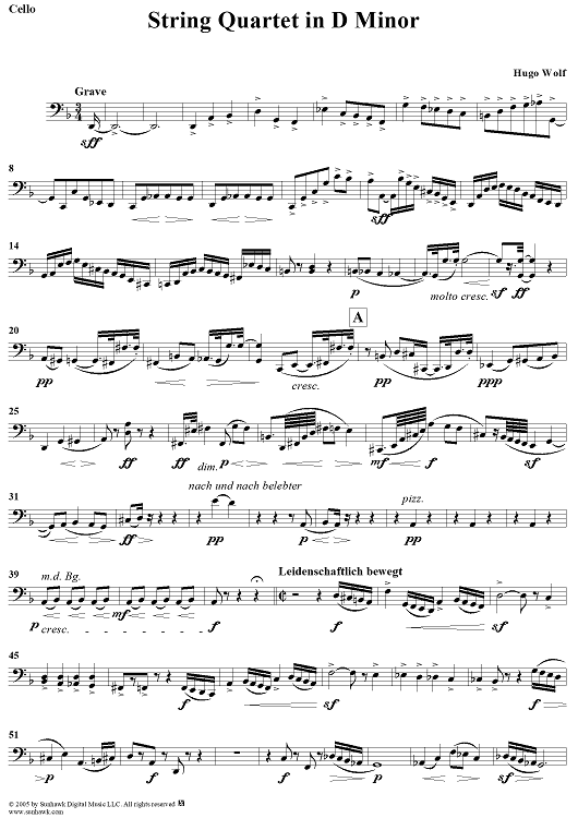 "String Quartet in D Minor - Cello" Sheet Music by Hugo Wolf