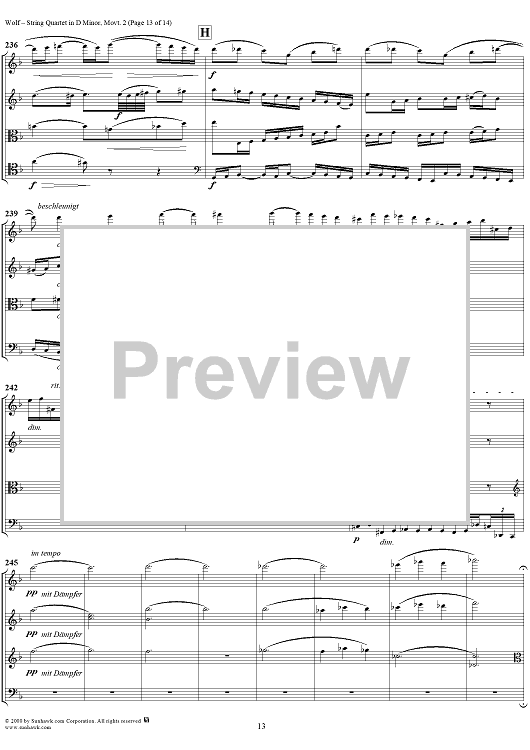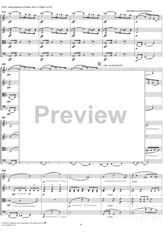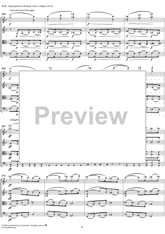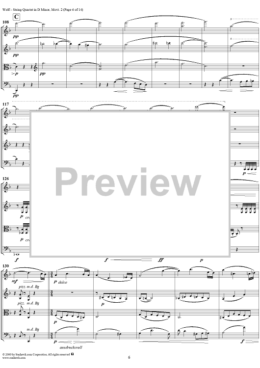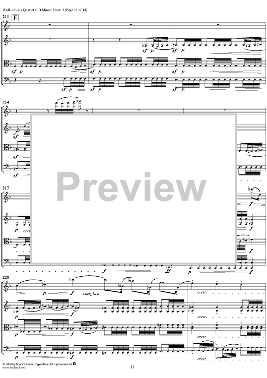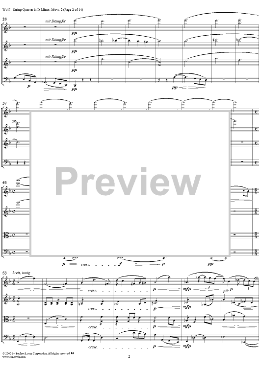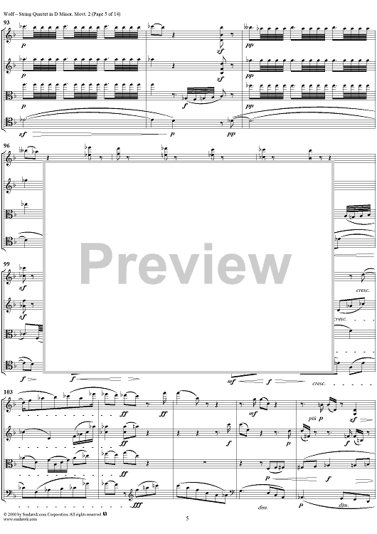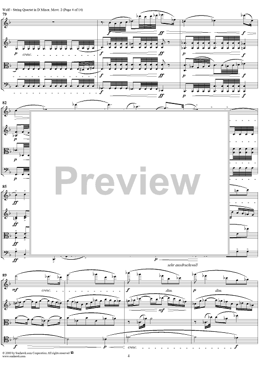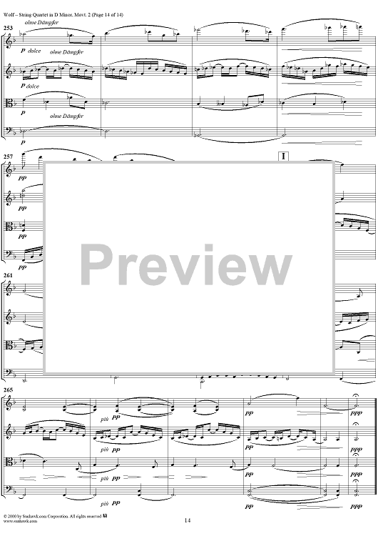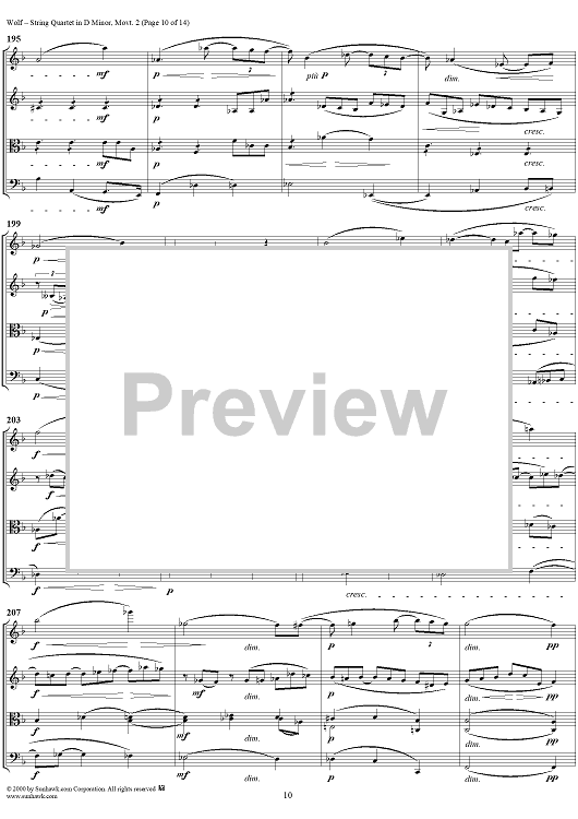 Digital Sheet Music for String Quartet in D Minor, Movement 2 - Full Score by Hugo Wolf scored for String Quartet; id:263843