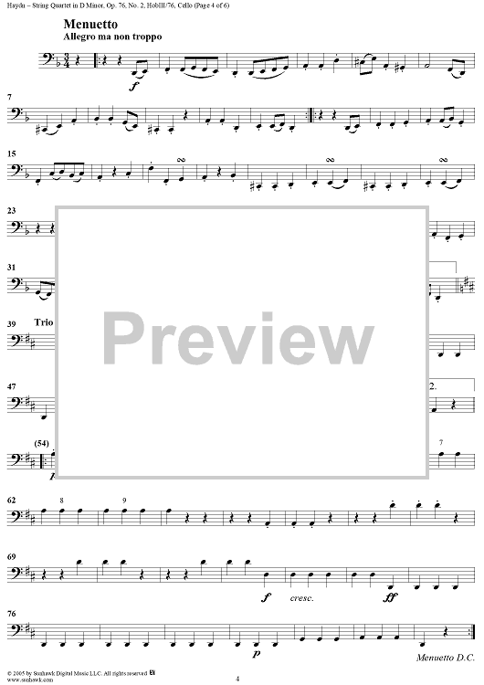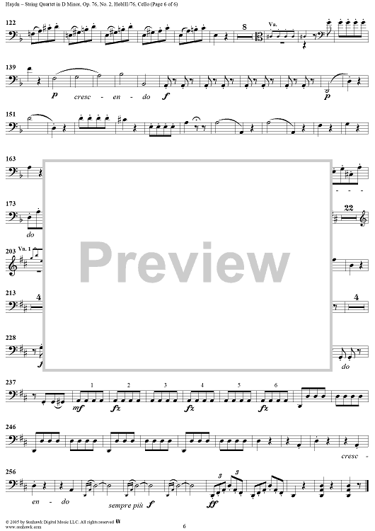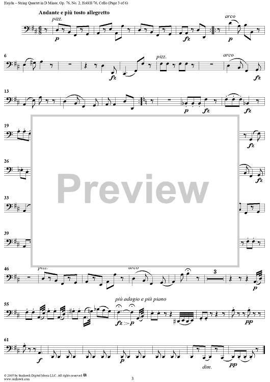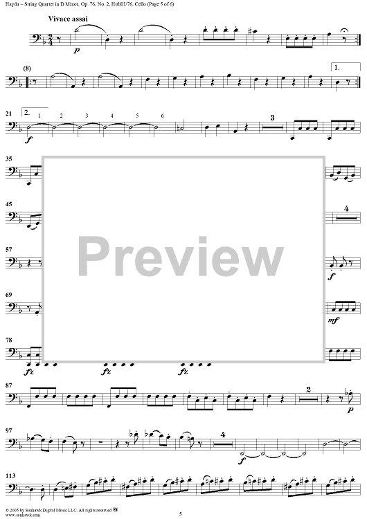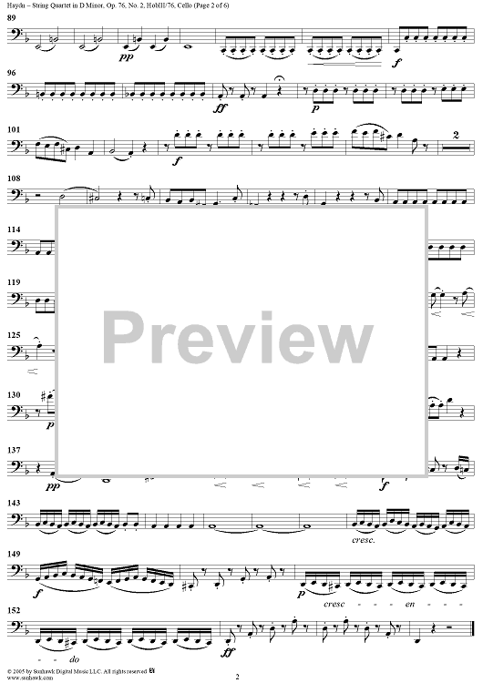 Digital Sheet Music for String Quartet in D Minor, Op. 76, No. 2 - Cello by Franz Joseph Haydn scored for String Quartet; id:310578
