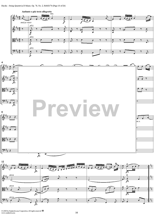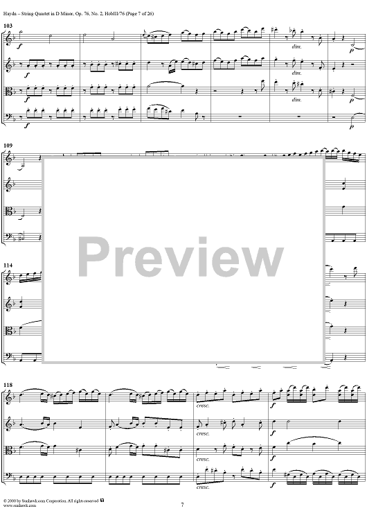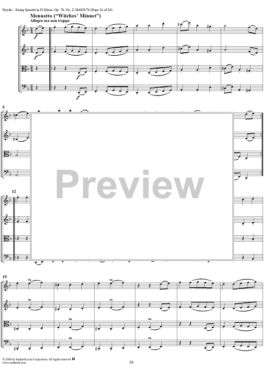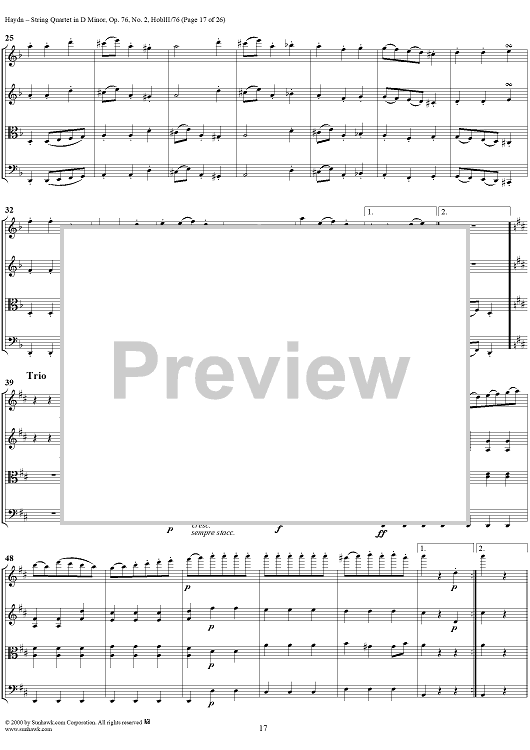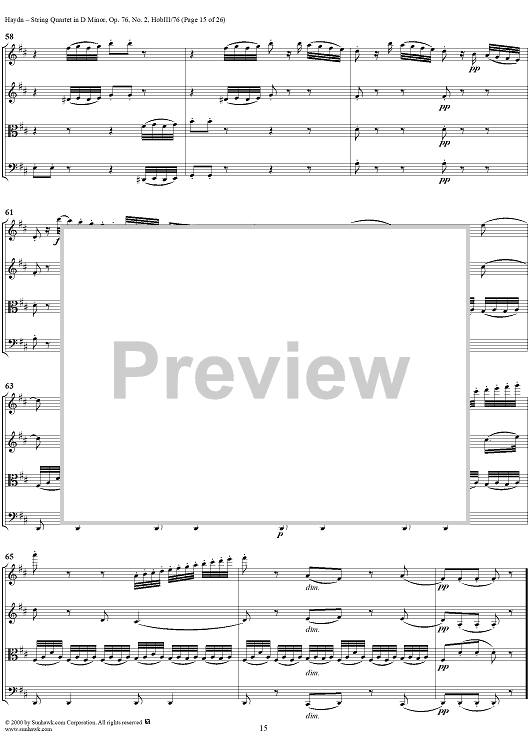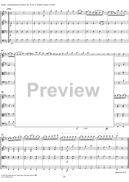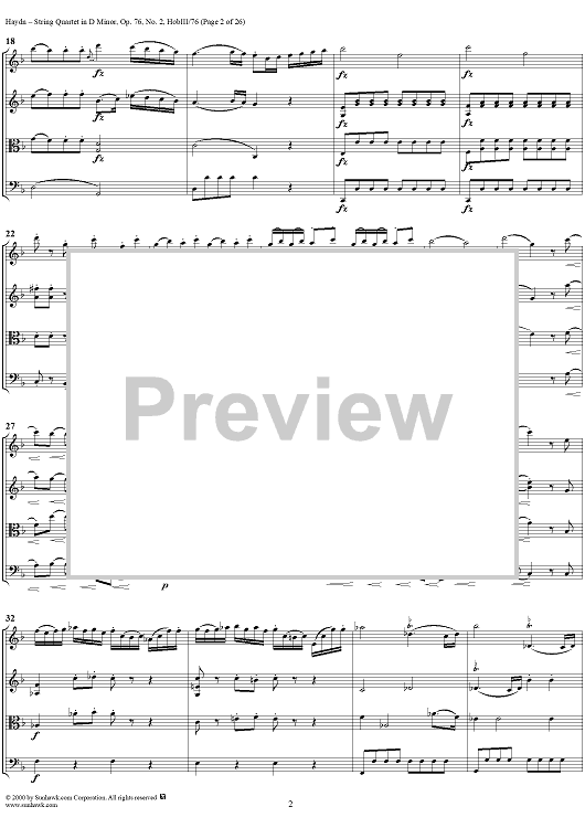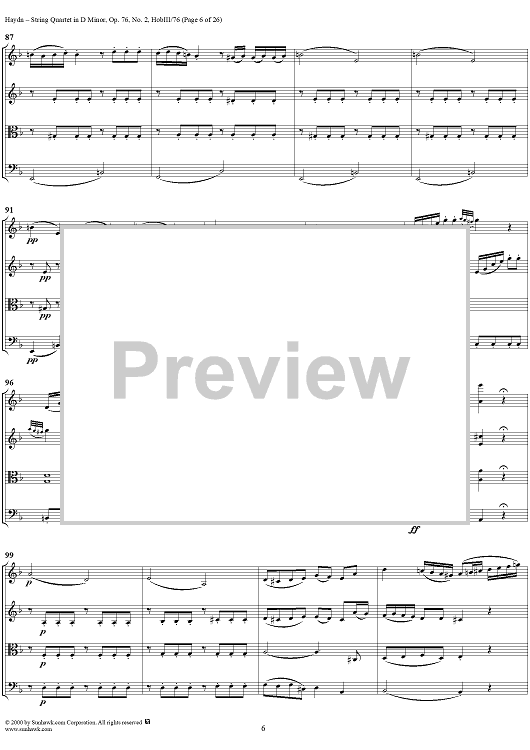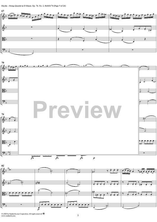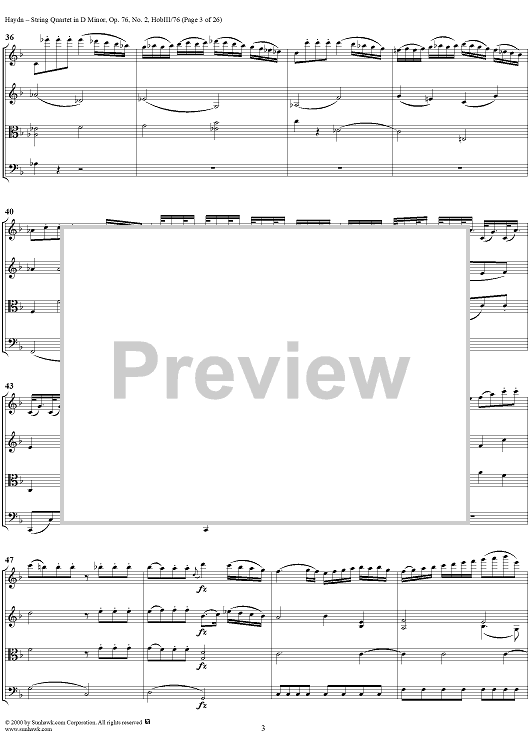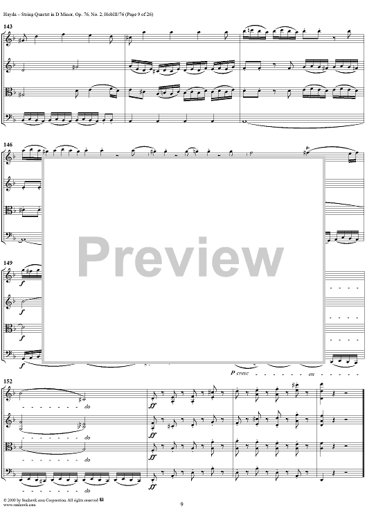 Digital Sheet Music for String Quartet in D Minor, Op. 76, No. 2 - Full Score by Franz Joseph Haydn scored for String Quartet; id:235917
