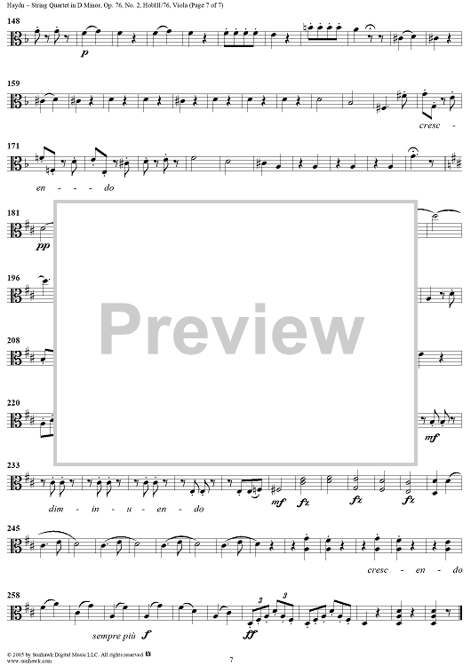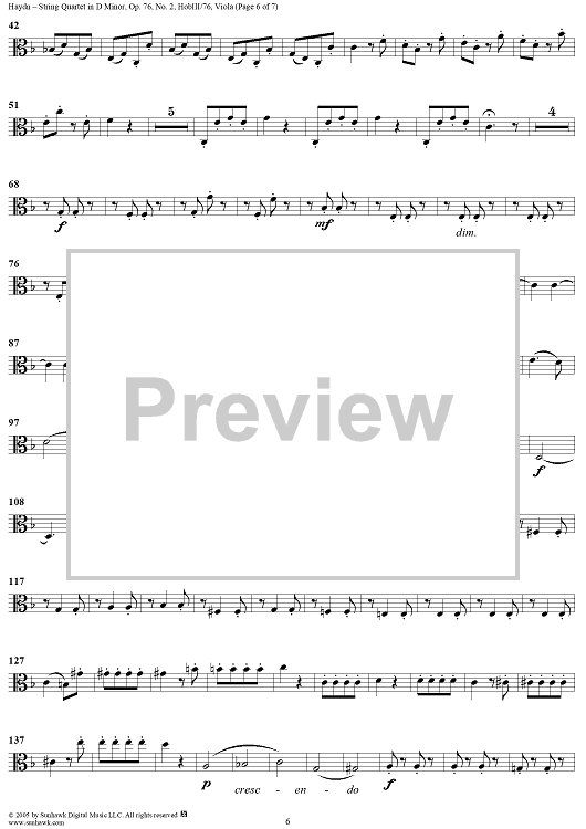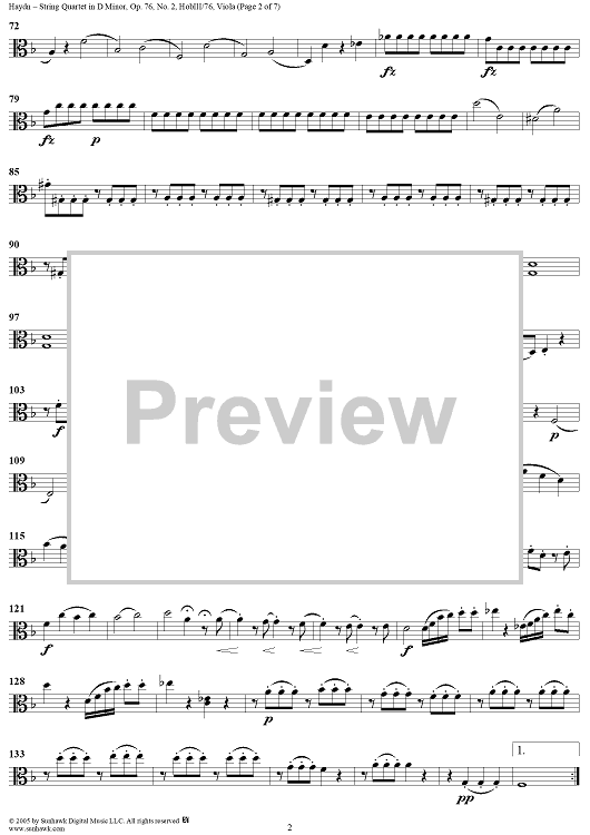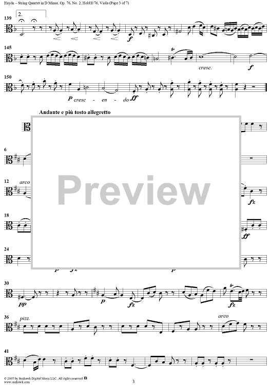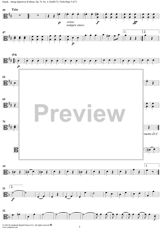 Digital Sheet Music for String Quartet in D Minor, Op. 76, No. 2 - Viola by Franz Joseph Haydn scored for String Quartet; id:310577