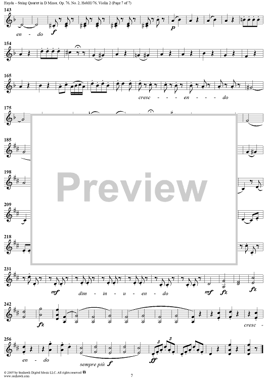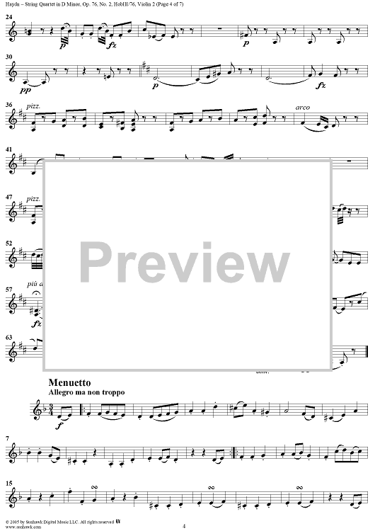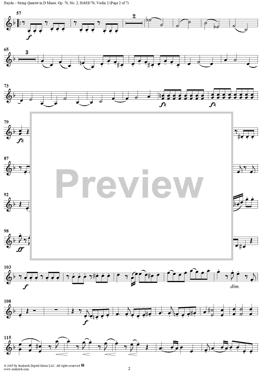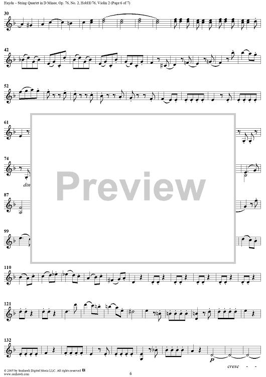 Digital Sheet Music for String Quartet in D Minor, Op. 76, No. 2 - Violin 2 by Franz Joseph Haydn scored for String Quartet; id:310576
