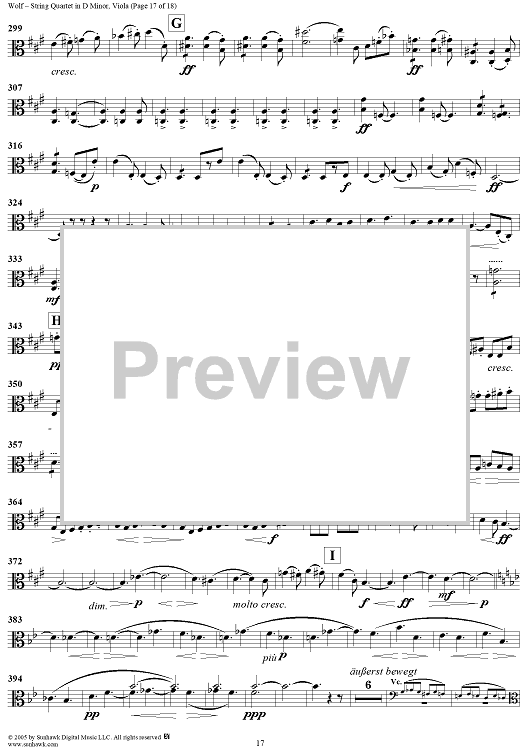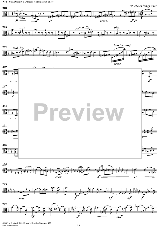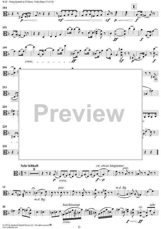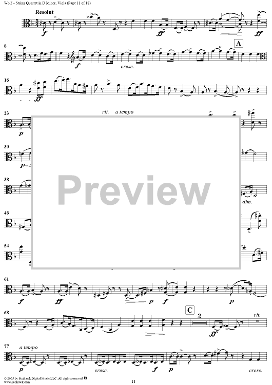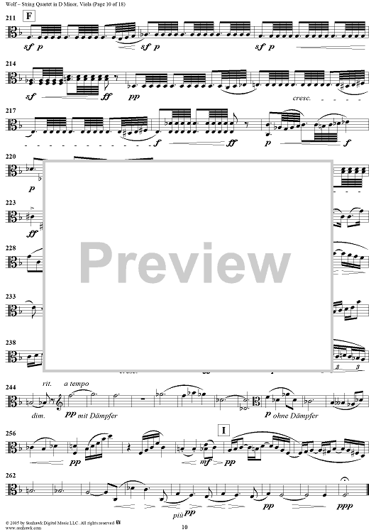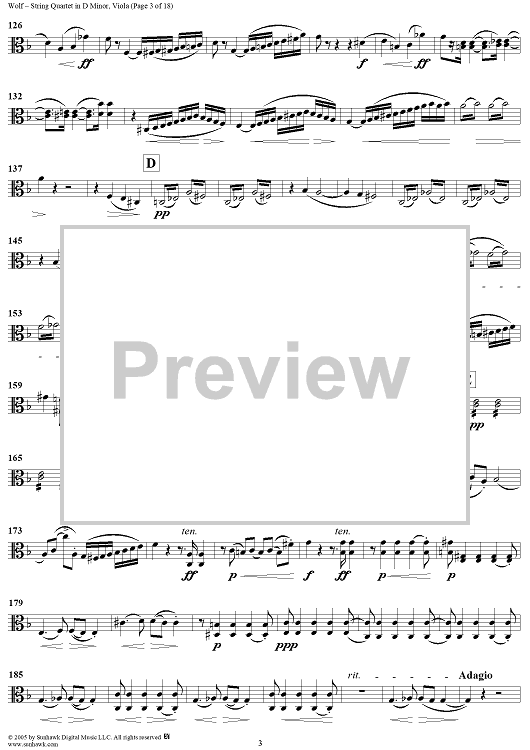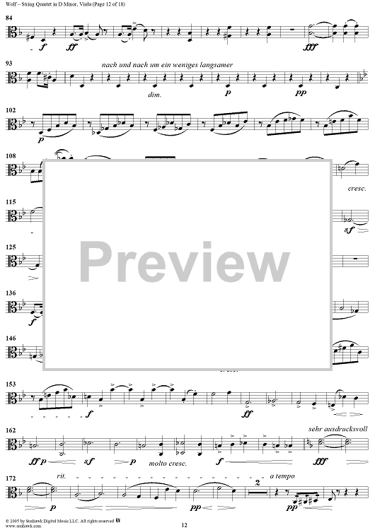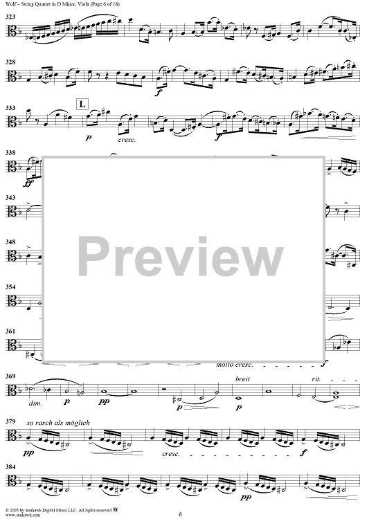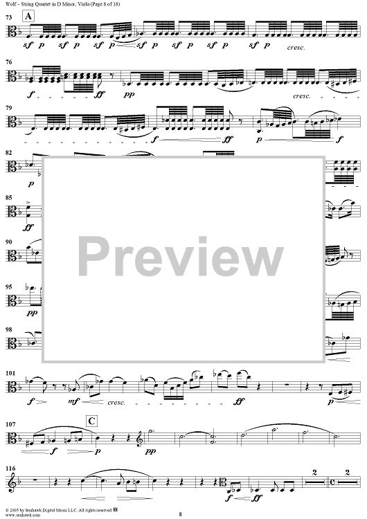 Digital Sheet Music for String Quartet in D Minor - Viola by Hugo Wolf scored for String Quartet; id:309411