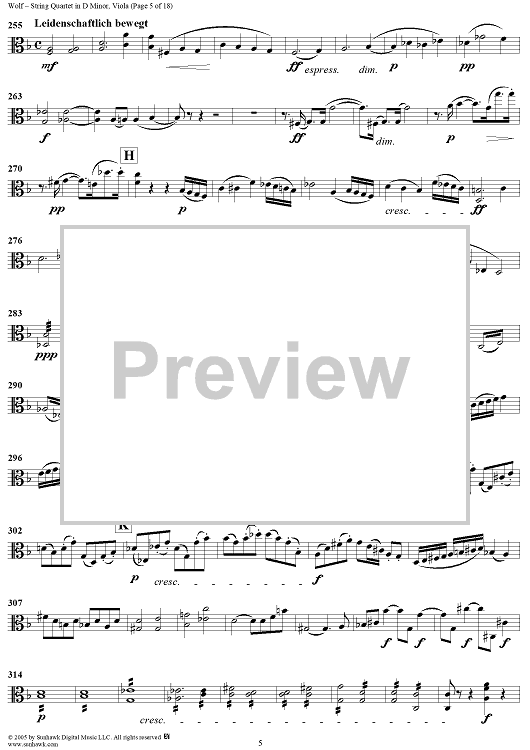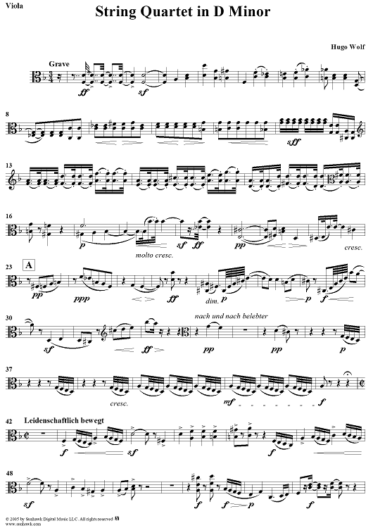 "String Quartet in D Minor - Viola" Sheet Music by Hugo Wolf