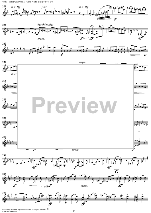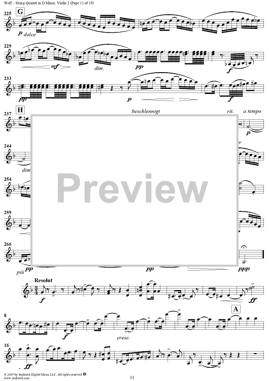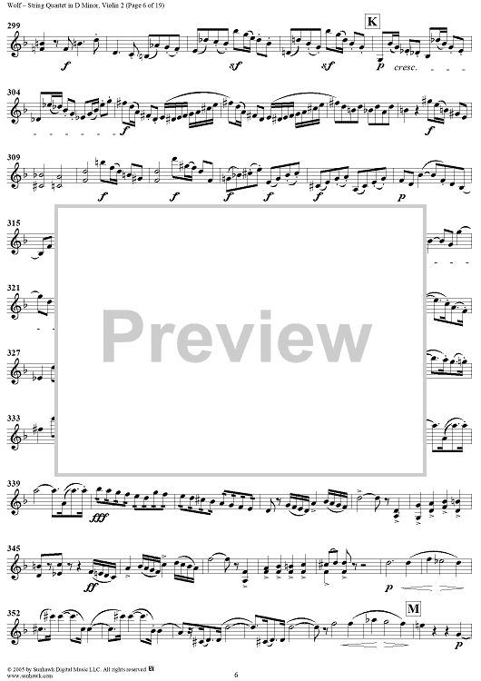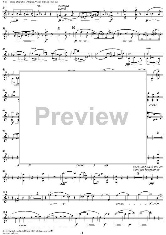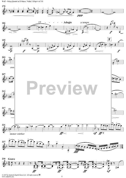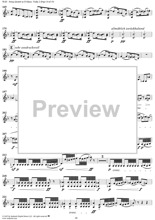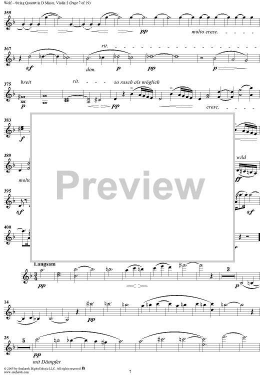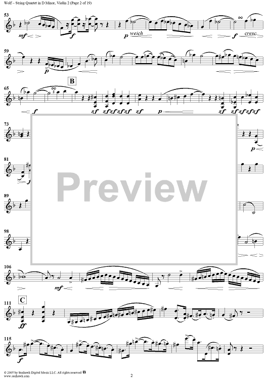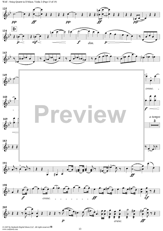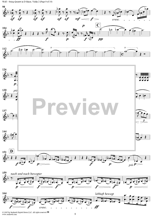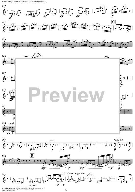 Digital Sheet Music for String Quartet in D Minor - Violin 2 by Hugo Wolf scored for String Quartet; id:309410
