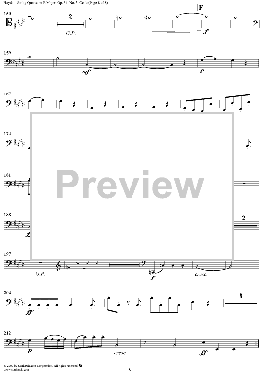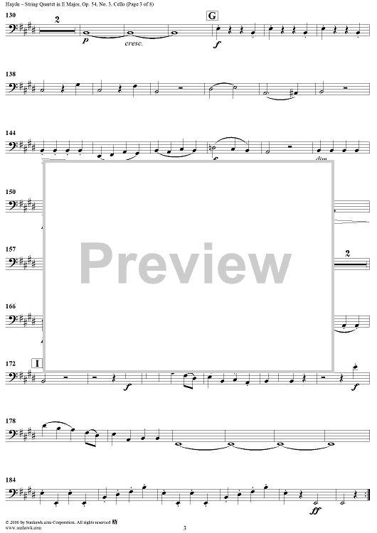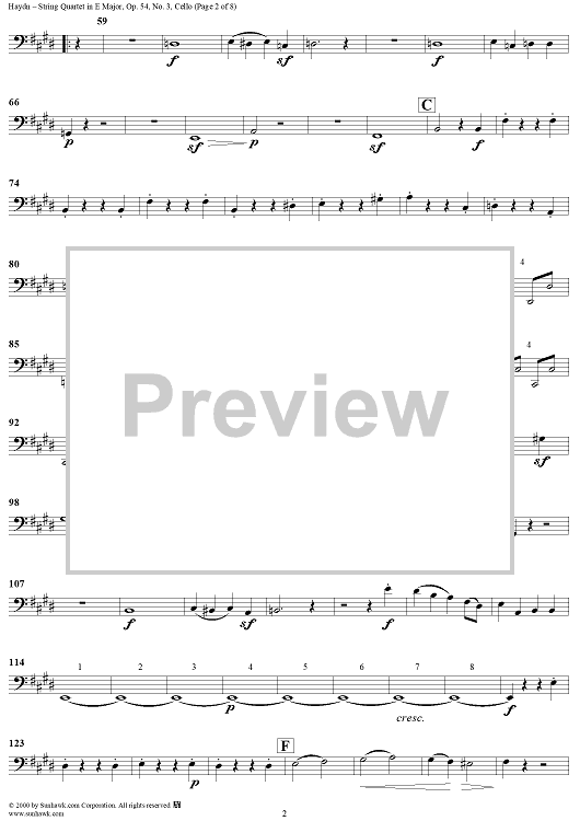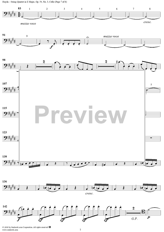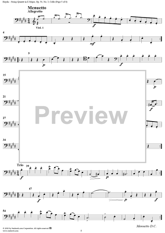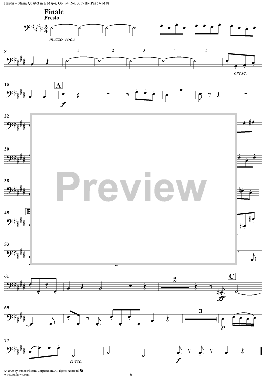 Digital Sheet Music for String Quartet in E Major, Op. 54, No. 3 - Cello by Franz Joseph Haydn scored for String Quartet; id:176613