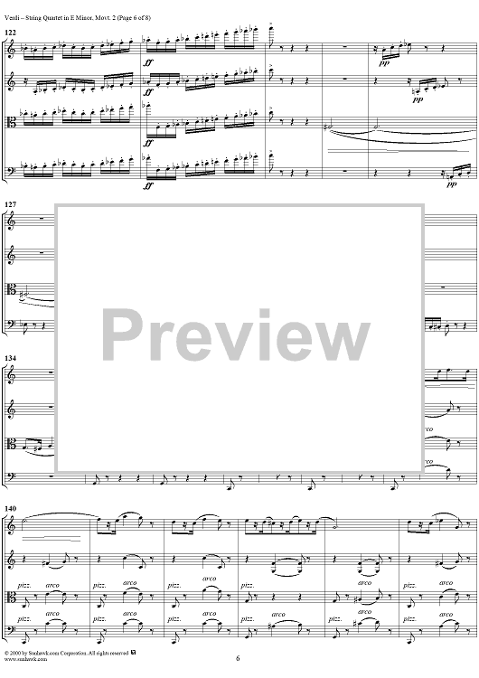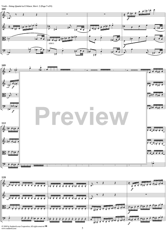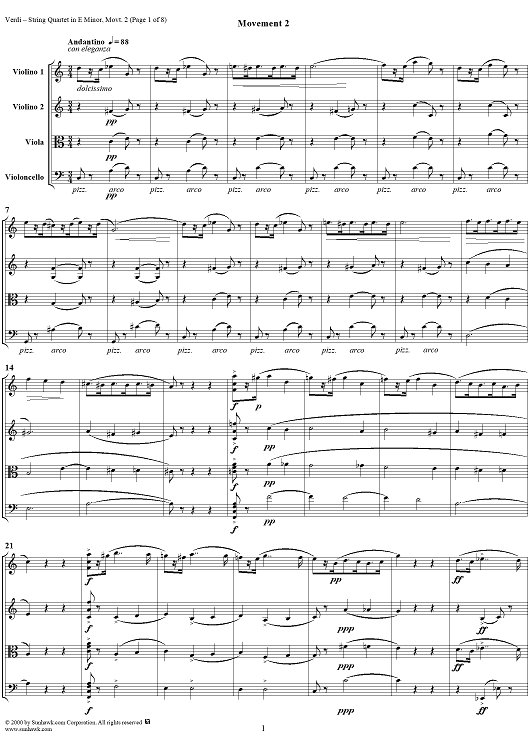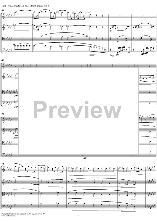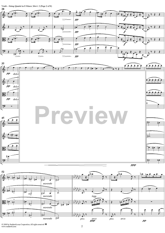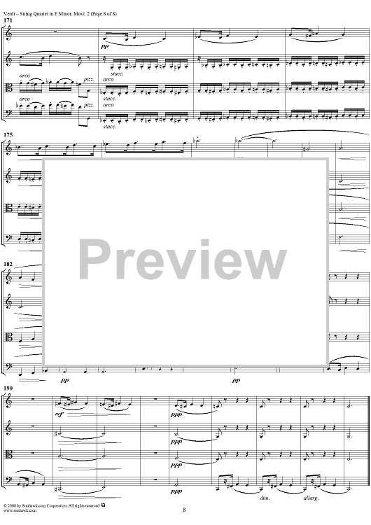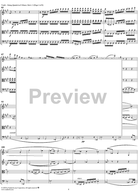 Digital Sheet Music for String Quartet in E Minor, Movement 2 - Score by Giuseppe Verdi scored for String Quartet; id:264496