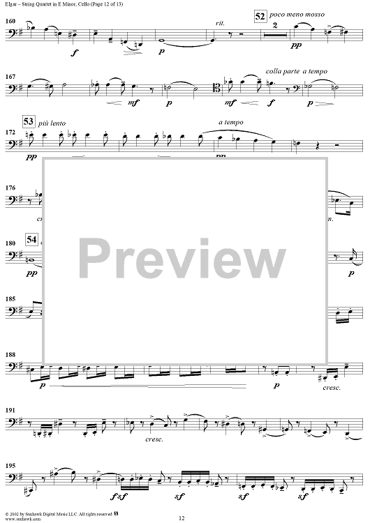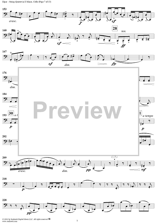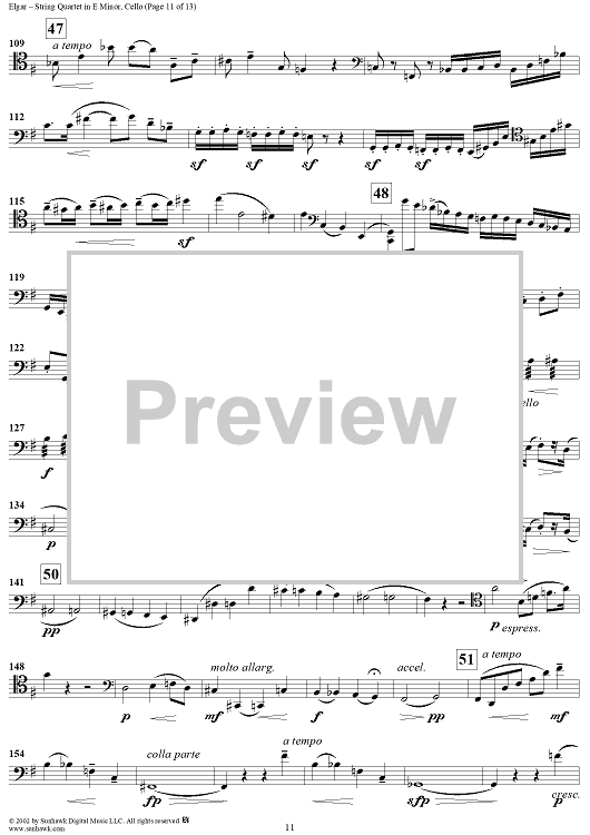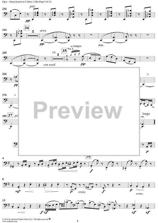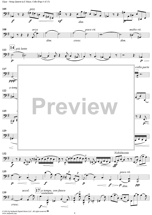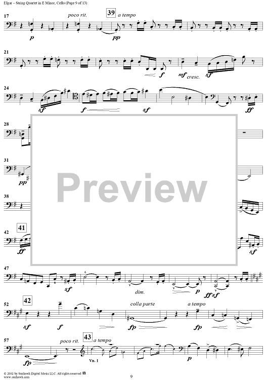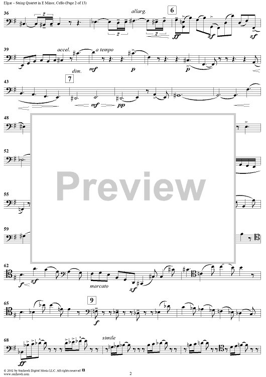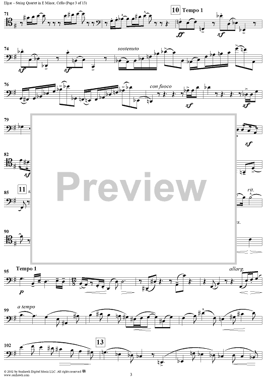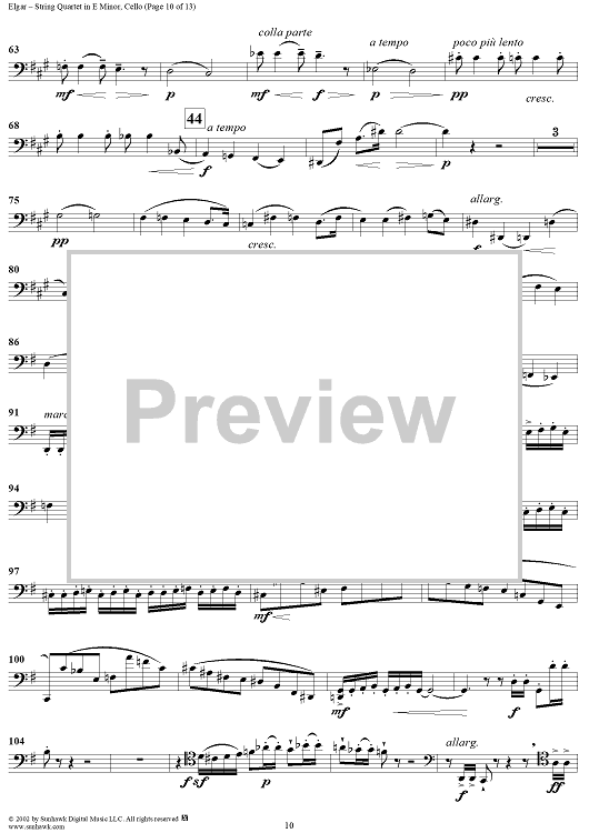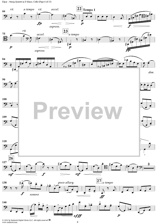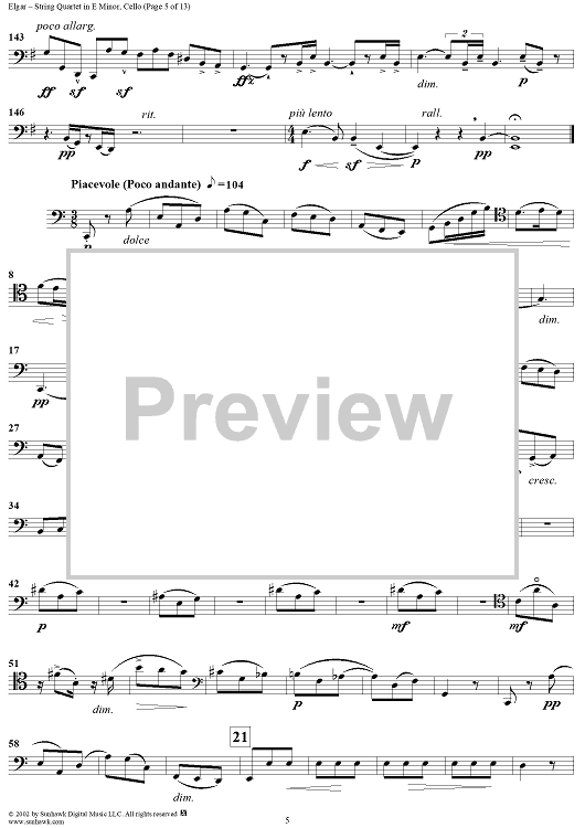 Digital Sheet Music for String Quartet in E Minor, Op. 83 - Cello by Edward Elgar scored for String Quartet; id:270332