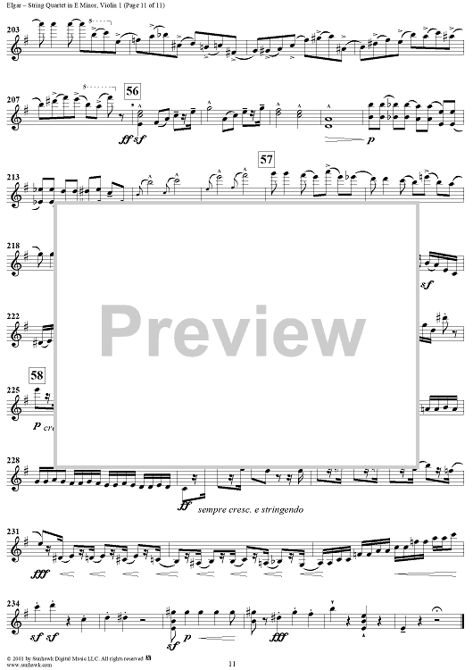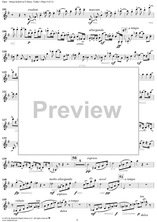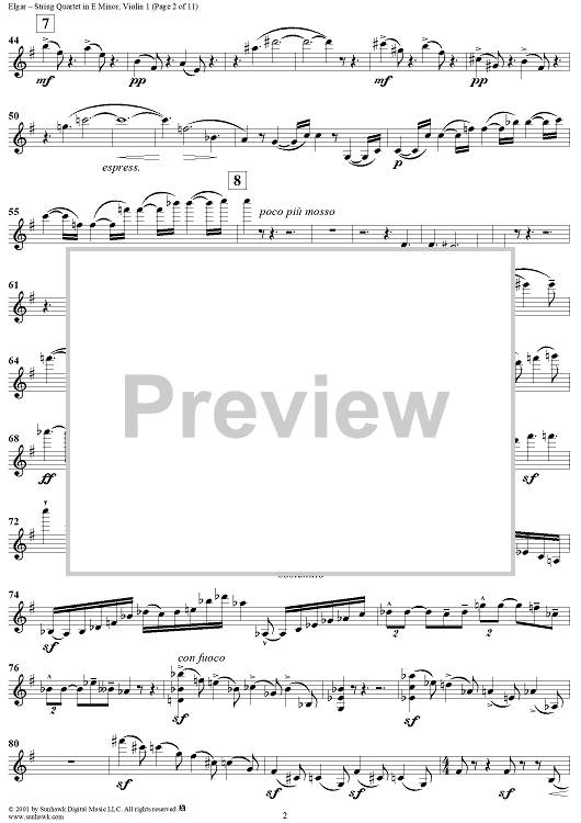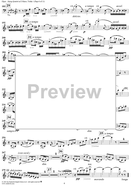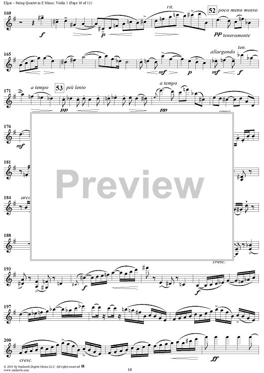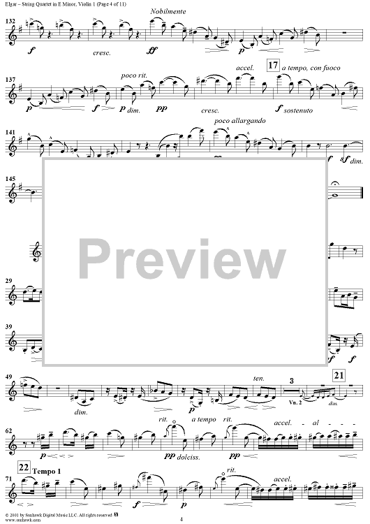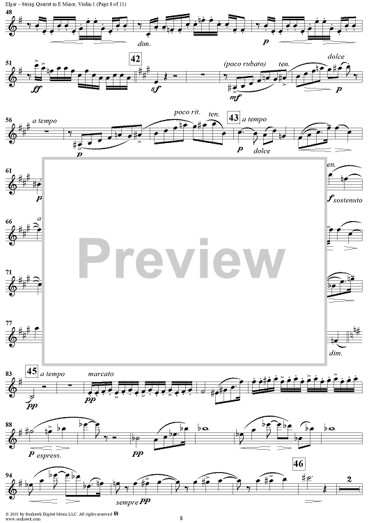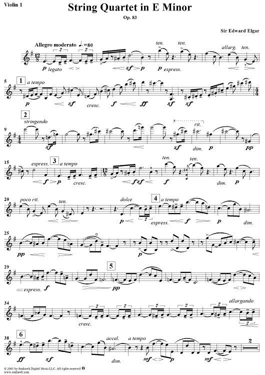 Digital Sheet Music for String Quartet in E Minor, Op. 83 - Violin 1 by Edward Elgar scored for String Quartet; id:270328