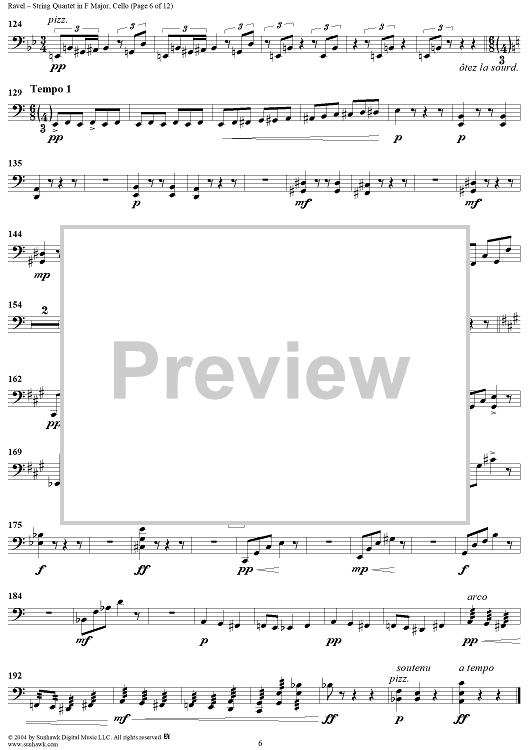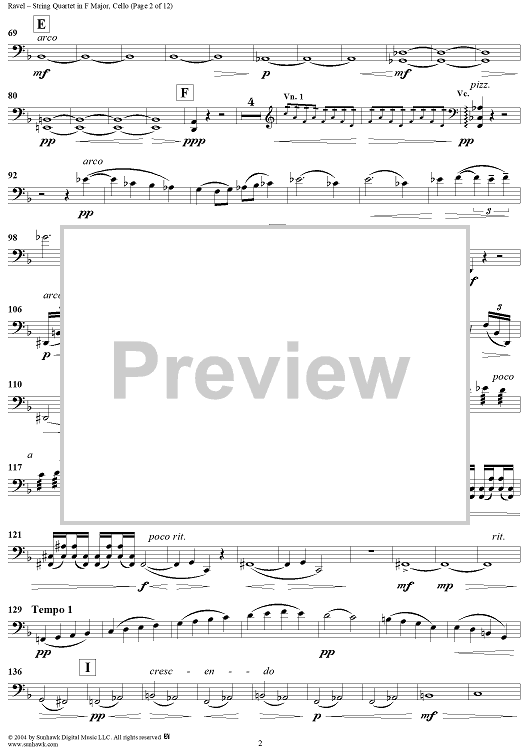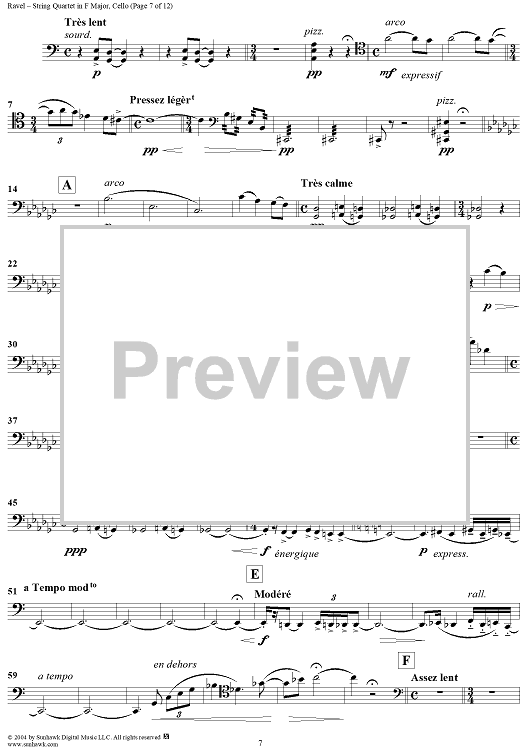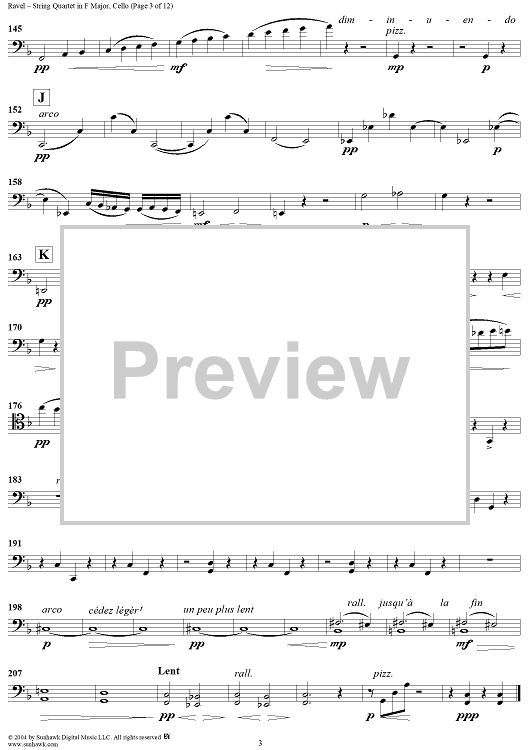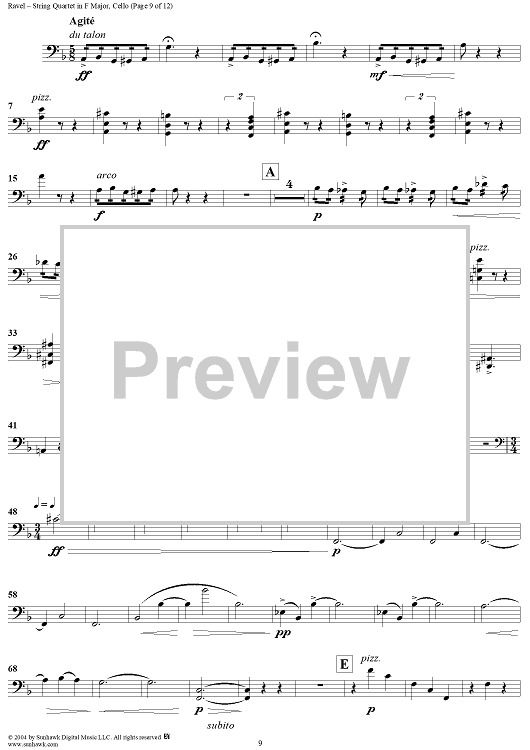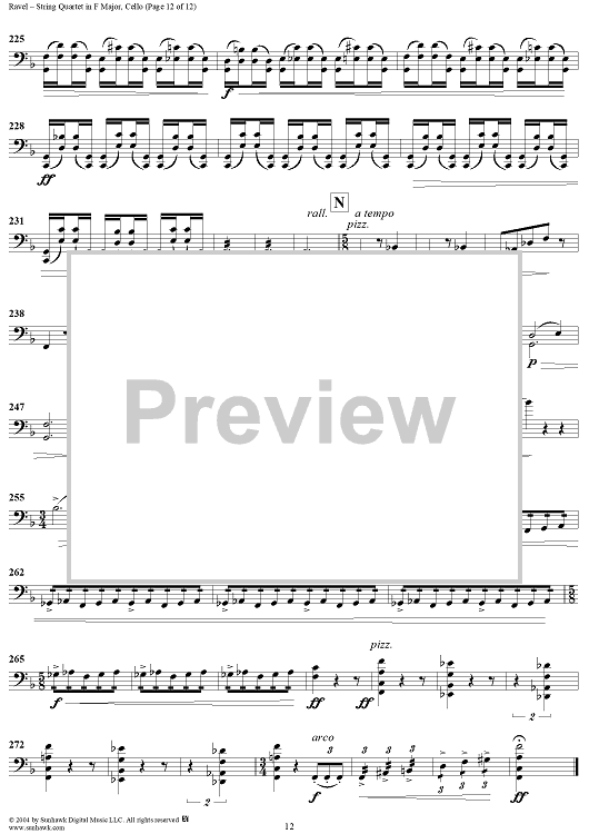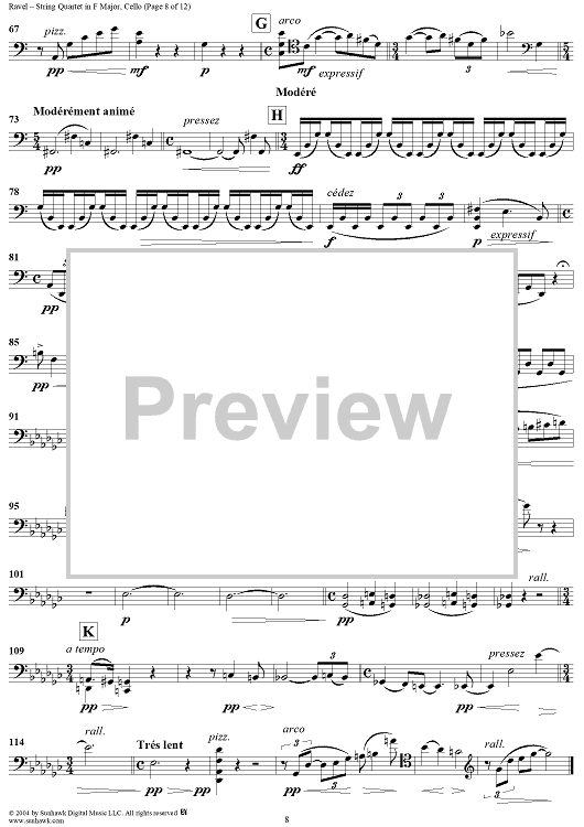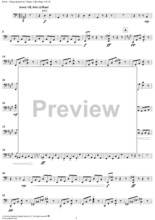 Digital Sheet Music for String Quartet in F Major - Cello by Maurice Ravel scored for String Quartet; id:303146