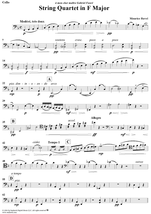 "String Quartet in F Major - Cello" Sheet Music by Maurice Ravel